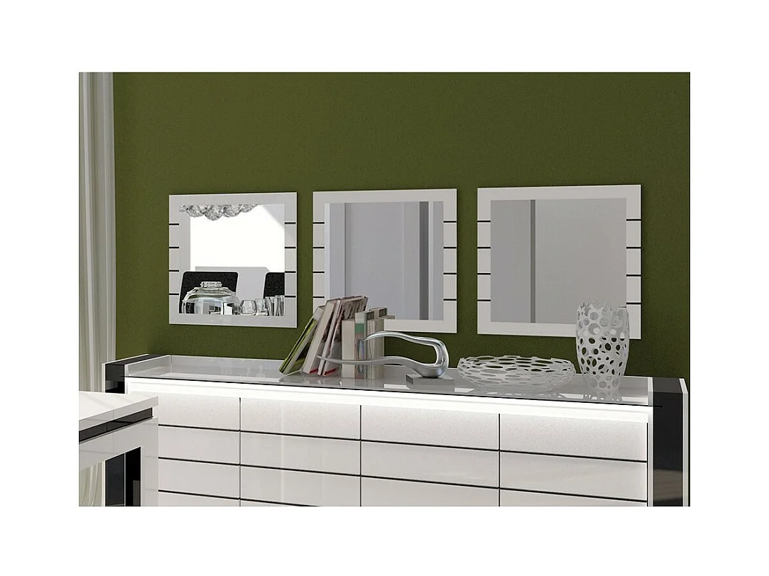Lote de 3 espejos cuadrados LINA blanco y negro brillante - 60 cm