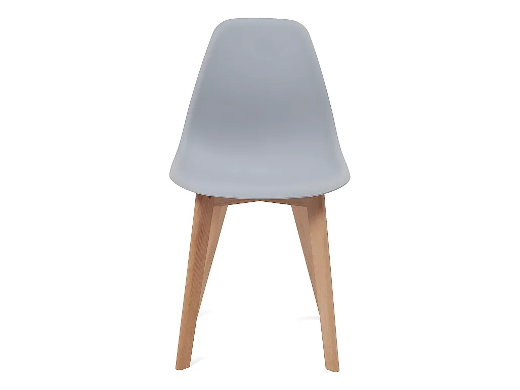 Lote de 4 sillas de cocina escandinavas de diseño. Asiento de plástico flexible de fácil limpieza. Patas de madera de haya clara NAO (gris)