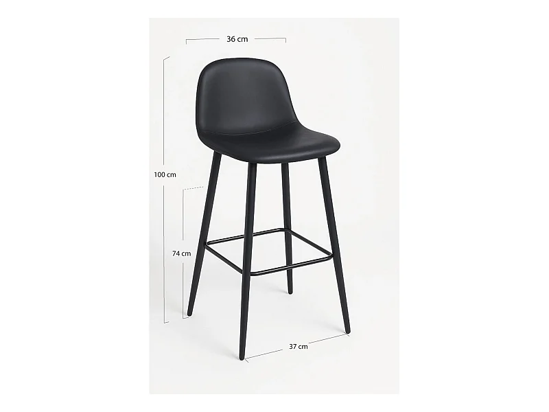 Lote de 4 Taburetes Teok Polipiel - Negro