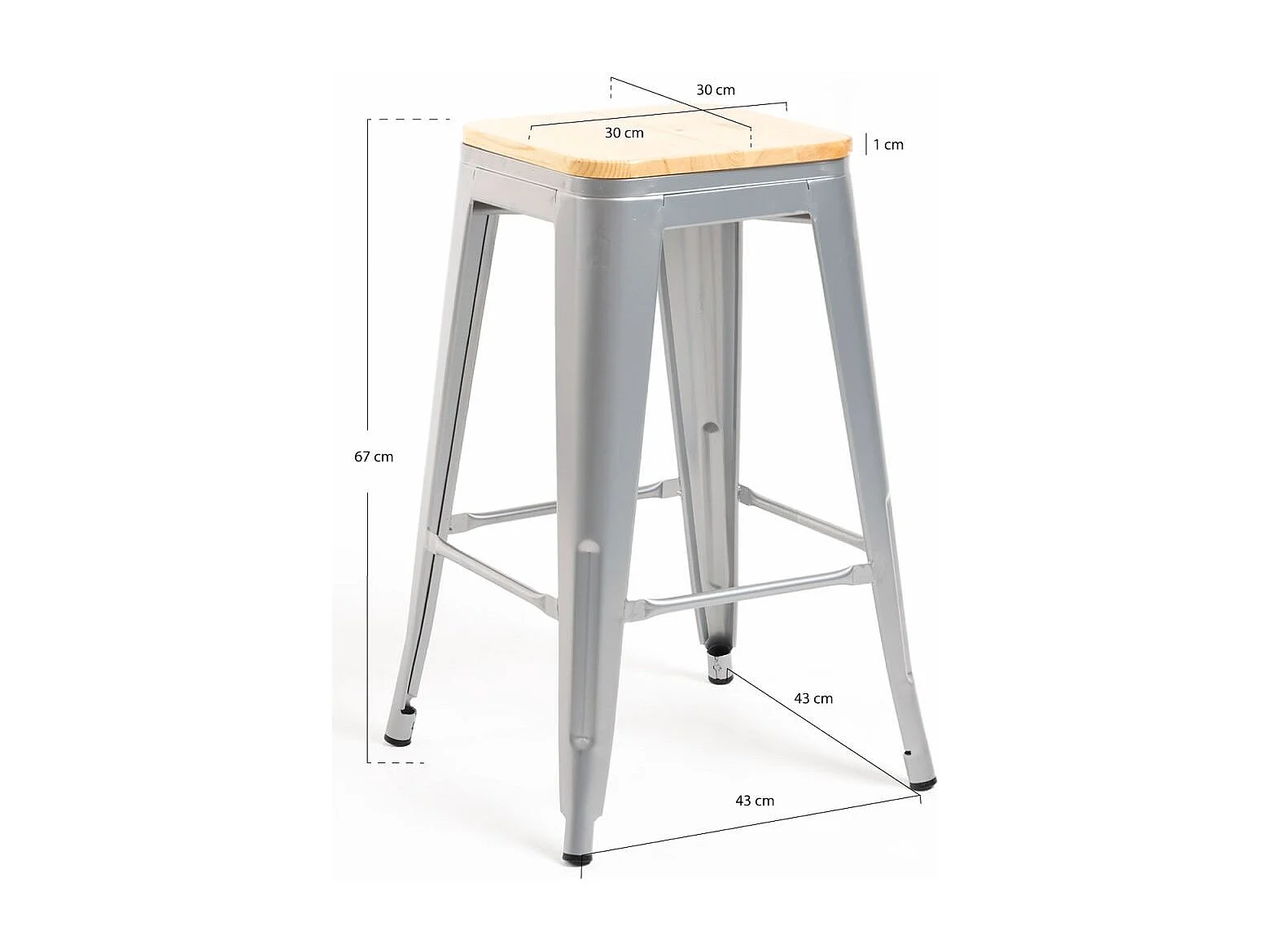 Lote de 4 Taburetes Torix Bajos Madera Natural - Gris metalizado