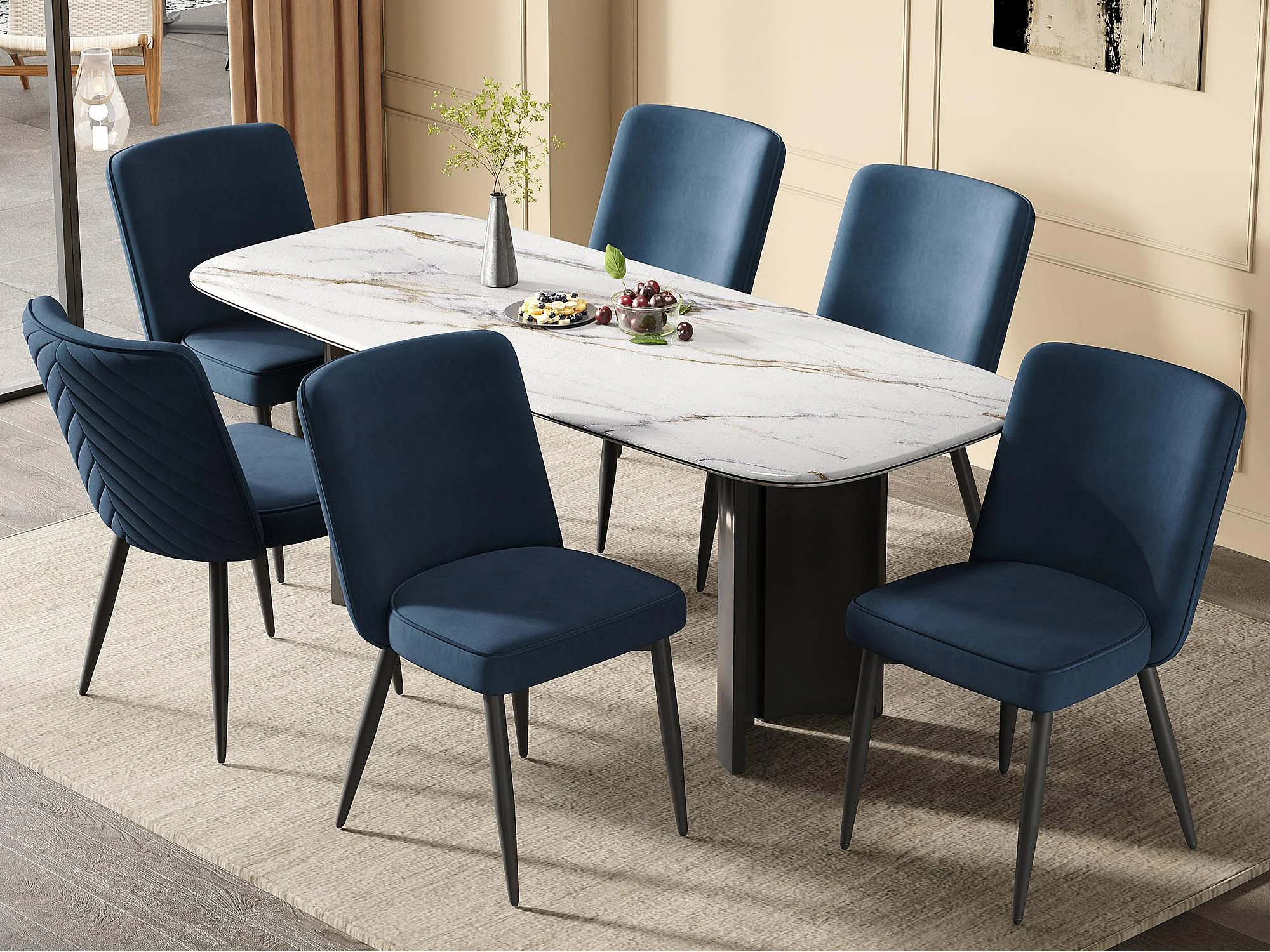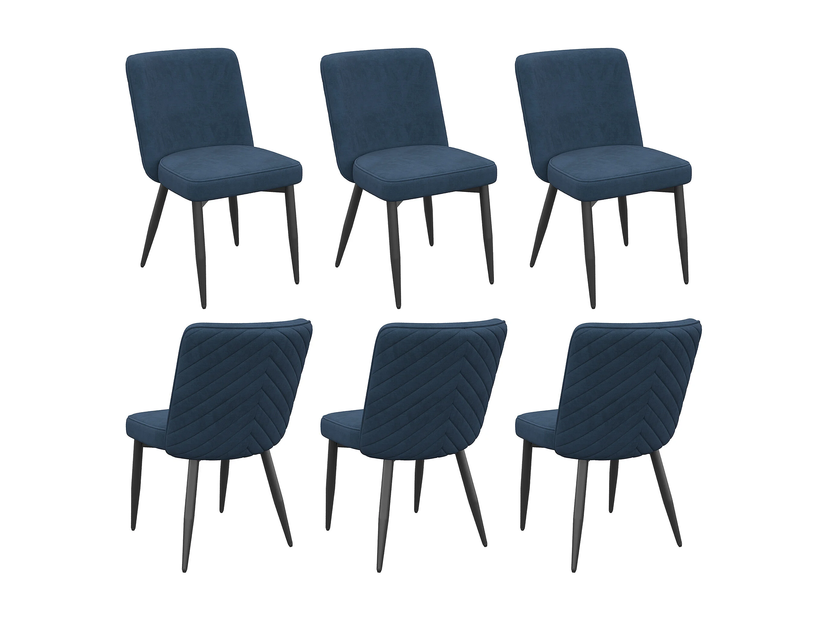 Lote de 6 sillas - Con respaldos cómodos - Estilo moderno - Tejido de terciopelo - Azul oscuro