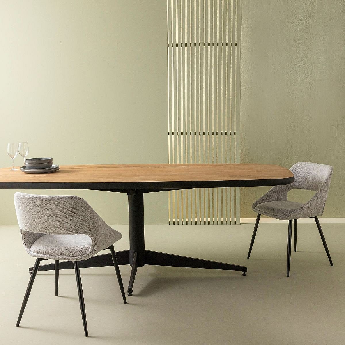 Mesa de comedor extensible 2 a 12 comensales de MDF y acero - Natural y negro - FIRELA