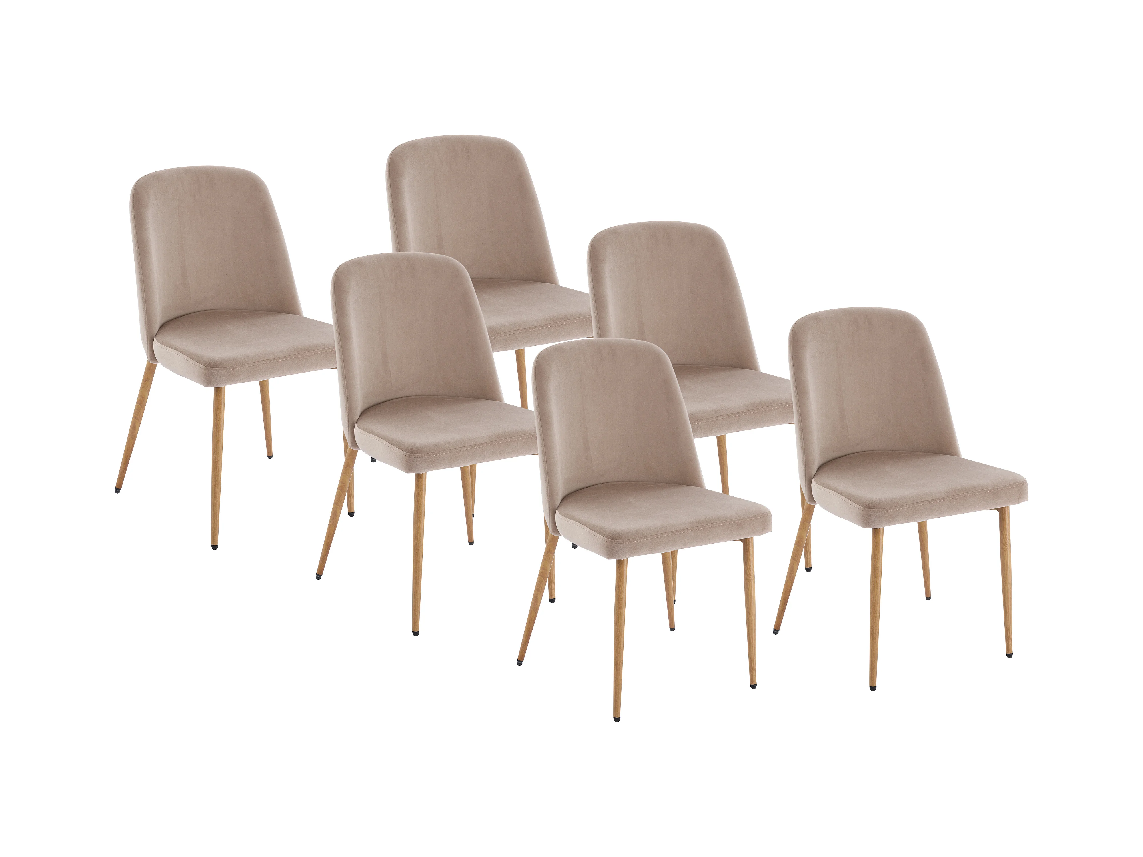 Lote de 6 sillas de terciopelo y metal efecto madera - Beige - MINAGRI