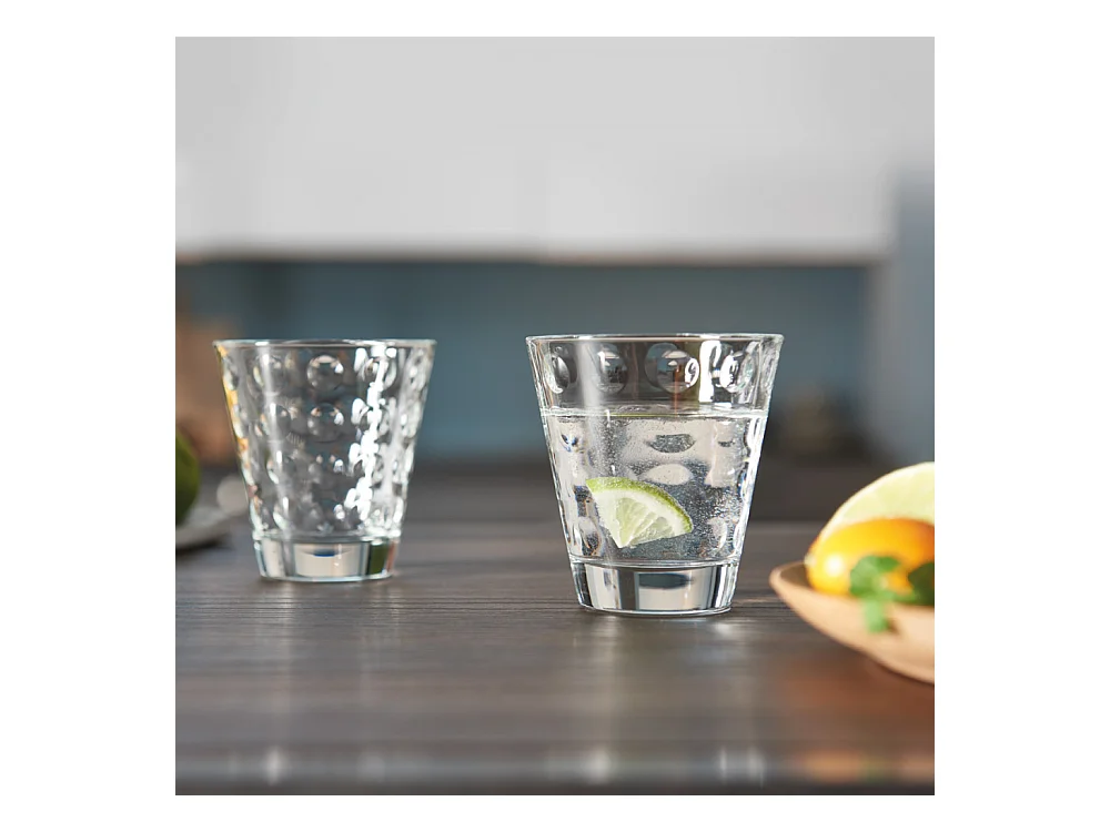 Lote de 6 vasos de 215 ml de vidrio transparente.
