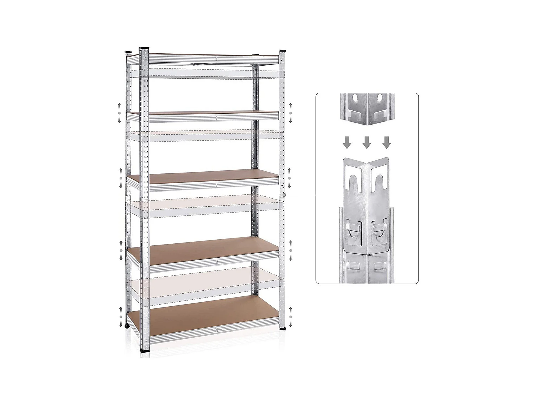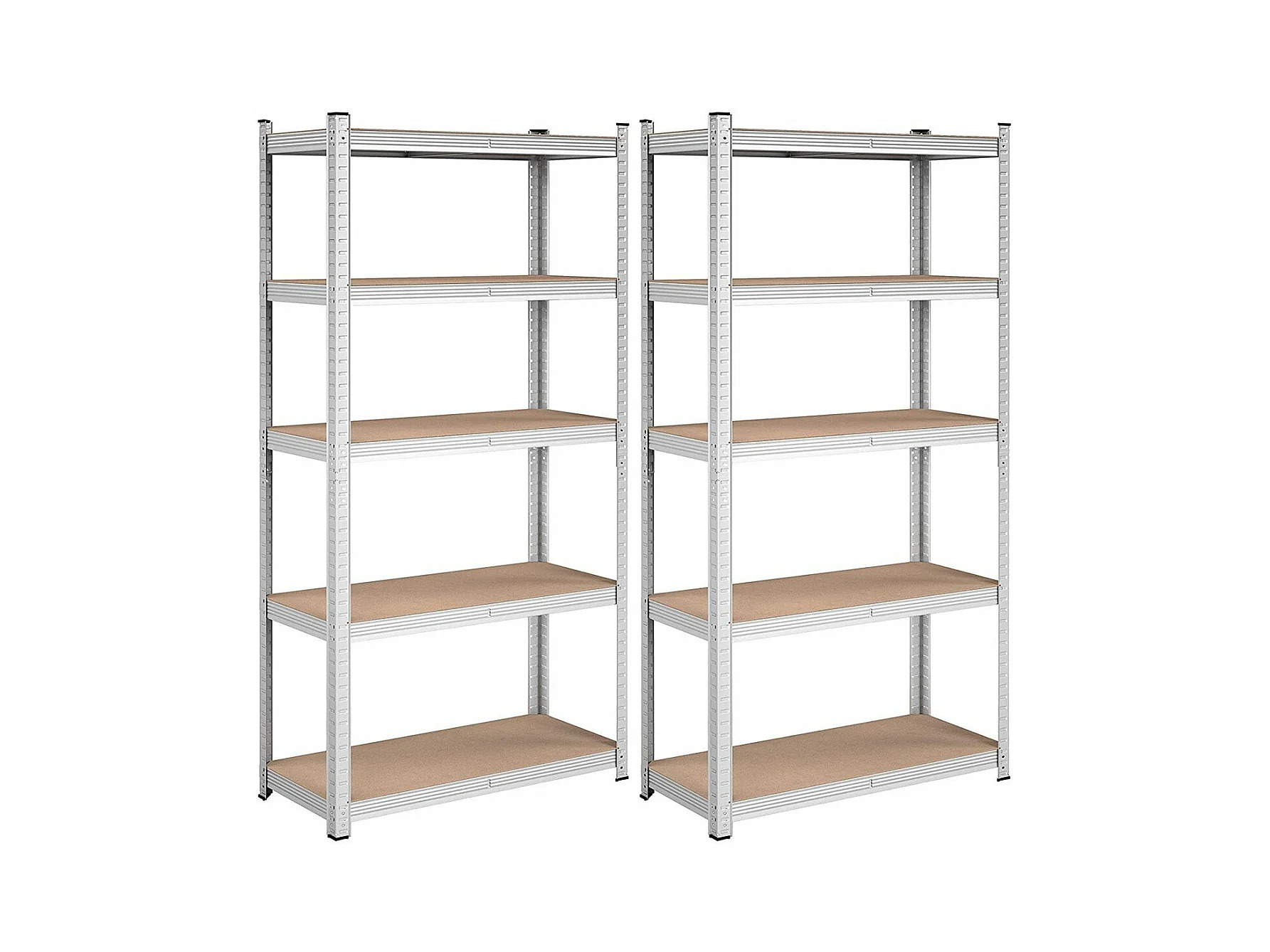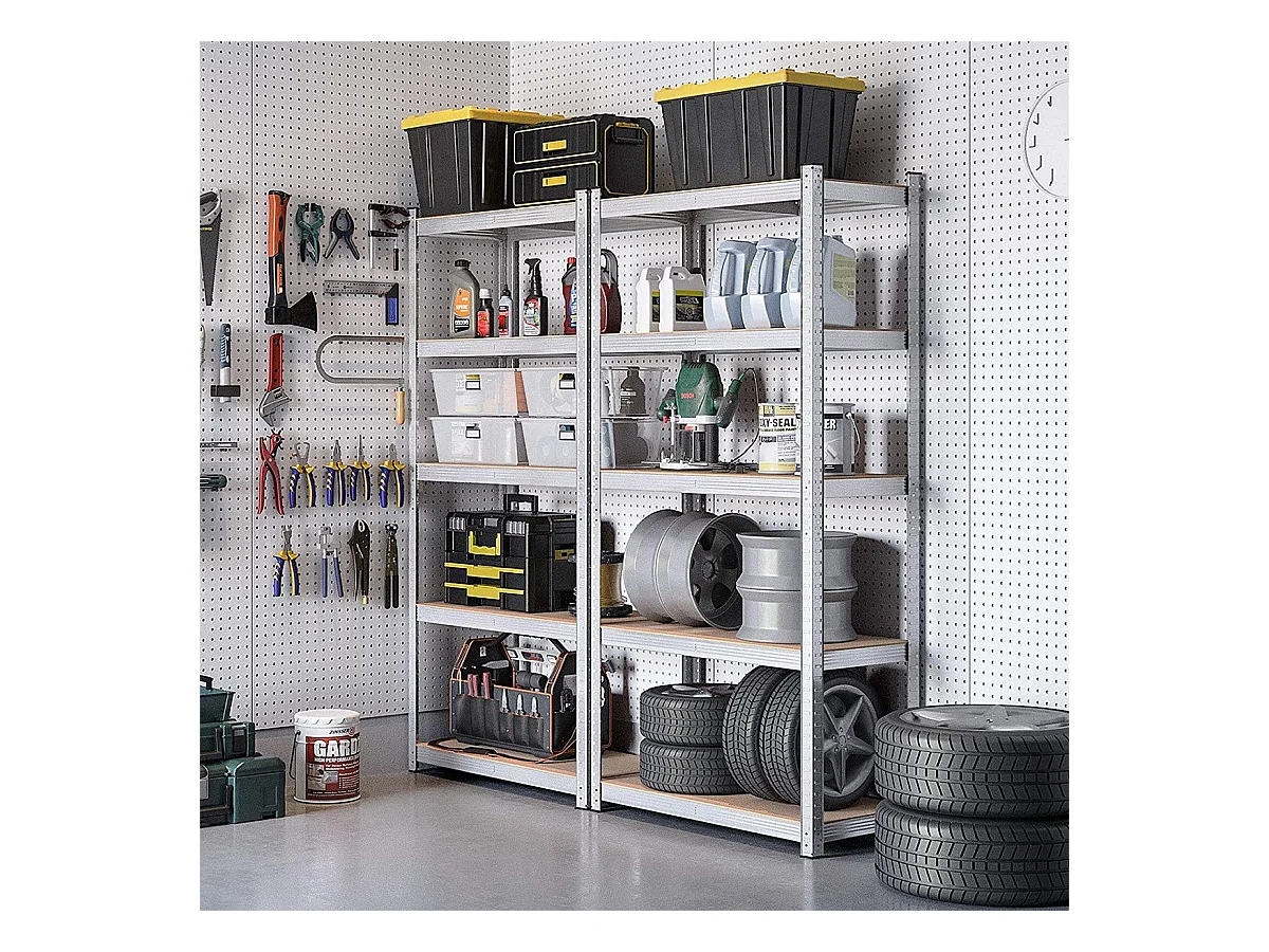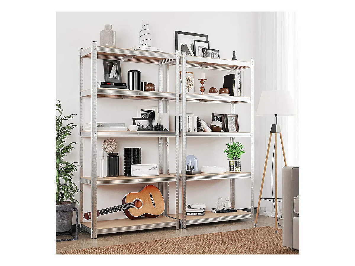 Lote de dos estanterías de 5 niveles con tablas ajustables - H180 cm