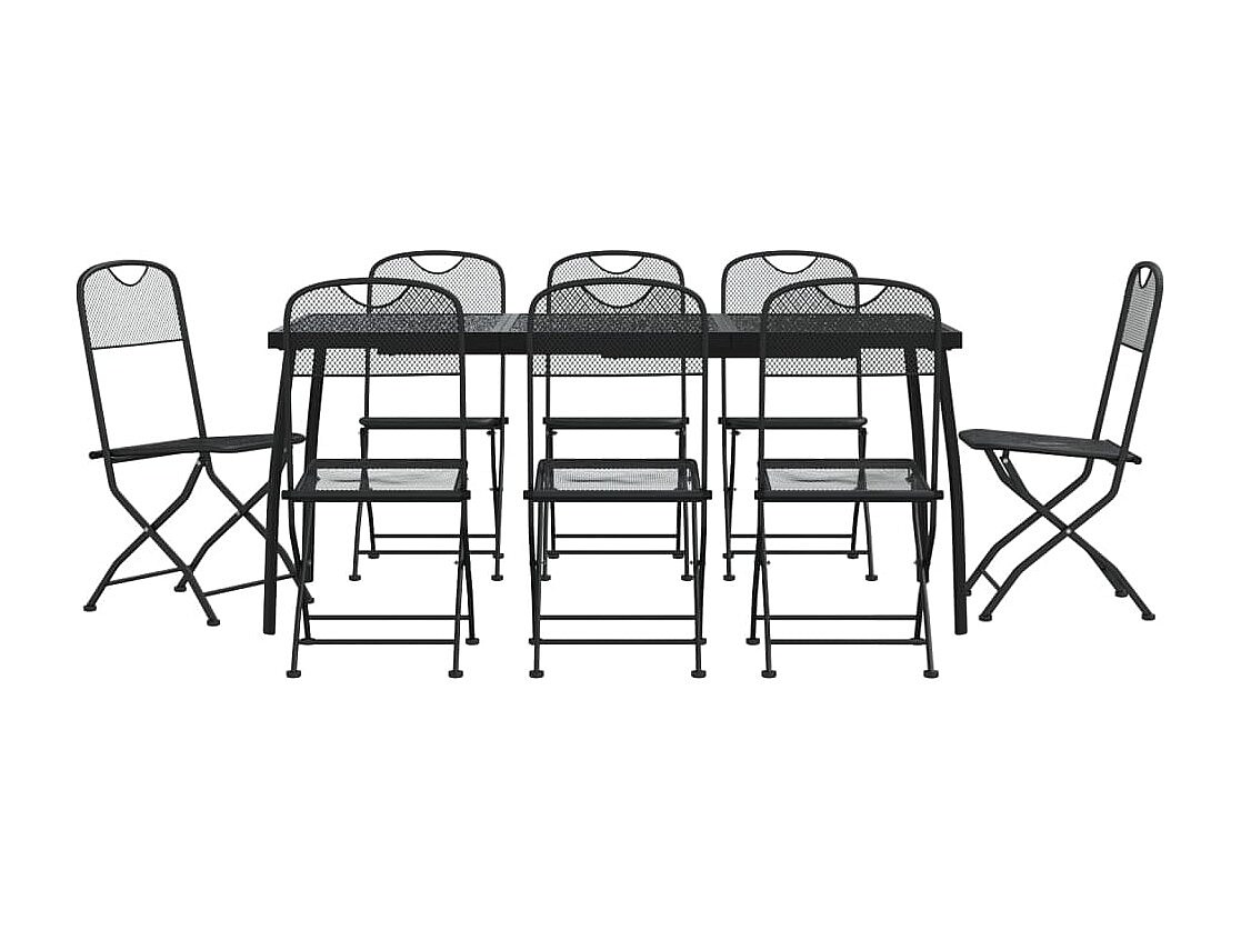 Juego de comedor de jardín 9 piezas malla metálica gris antracita