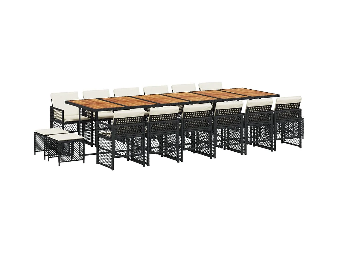 Bonno Set de muebles jardín 17 pzas con cojines ratán sintético negro