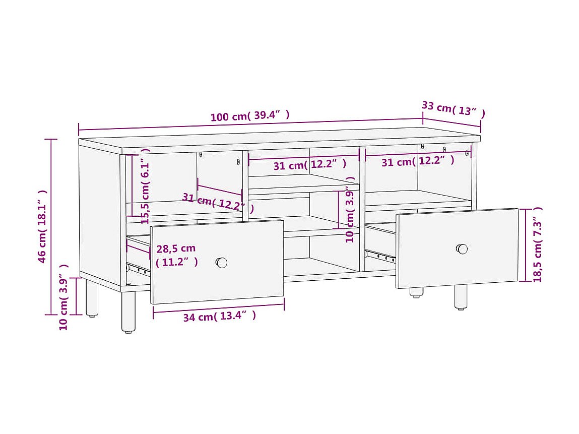 Luc-Élie Mueble de TV madera maciza de mango negro 100x33x46 cm