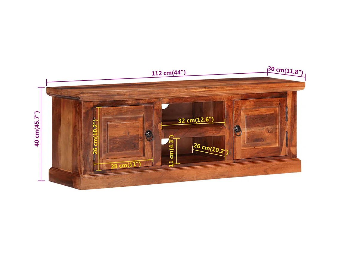 Lucien-Dominique-Paul Mueble de TV con puertas madera maciza de acacia 112x30x40 cm