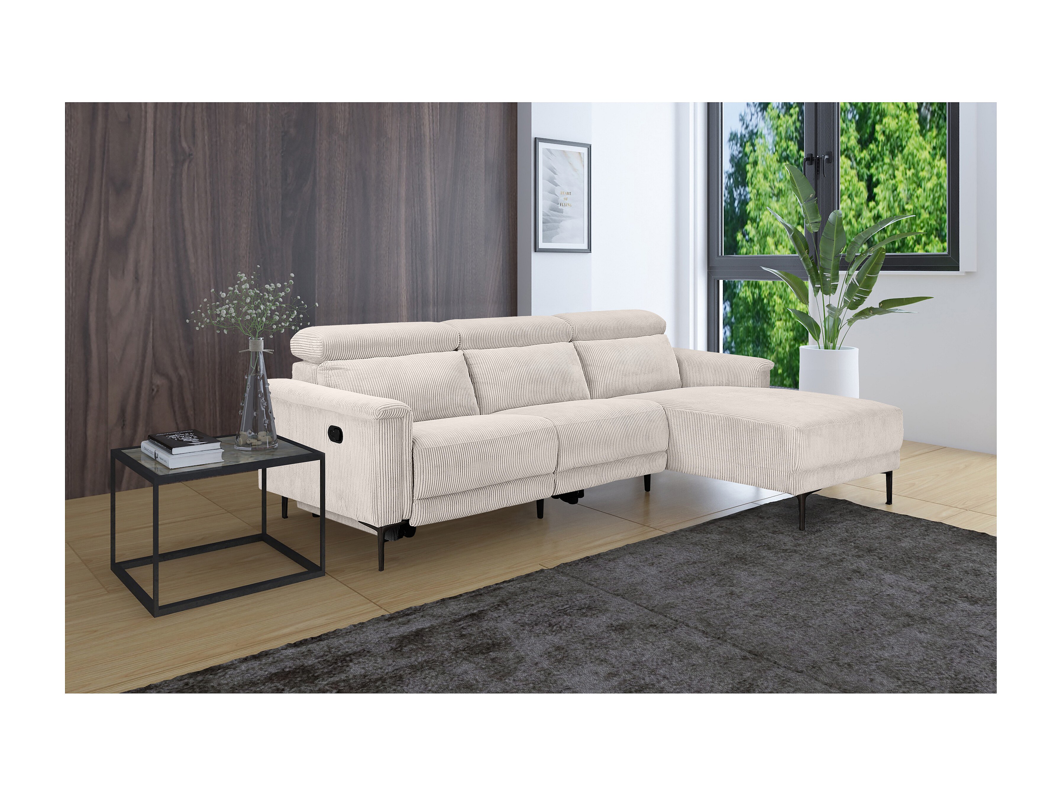 Lund | Sofá esquinero de 3 plazas con 1 sillón reclinable manual en crema pana