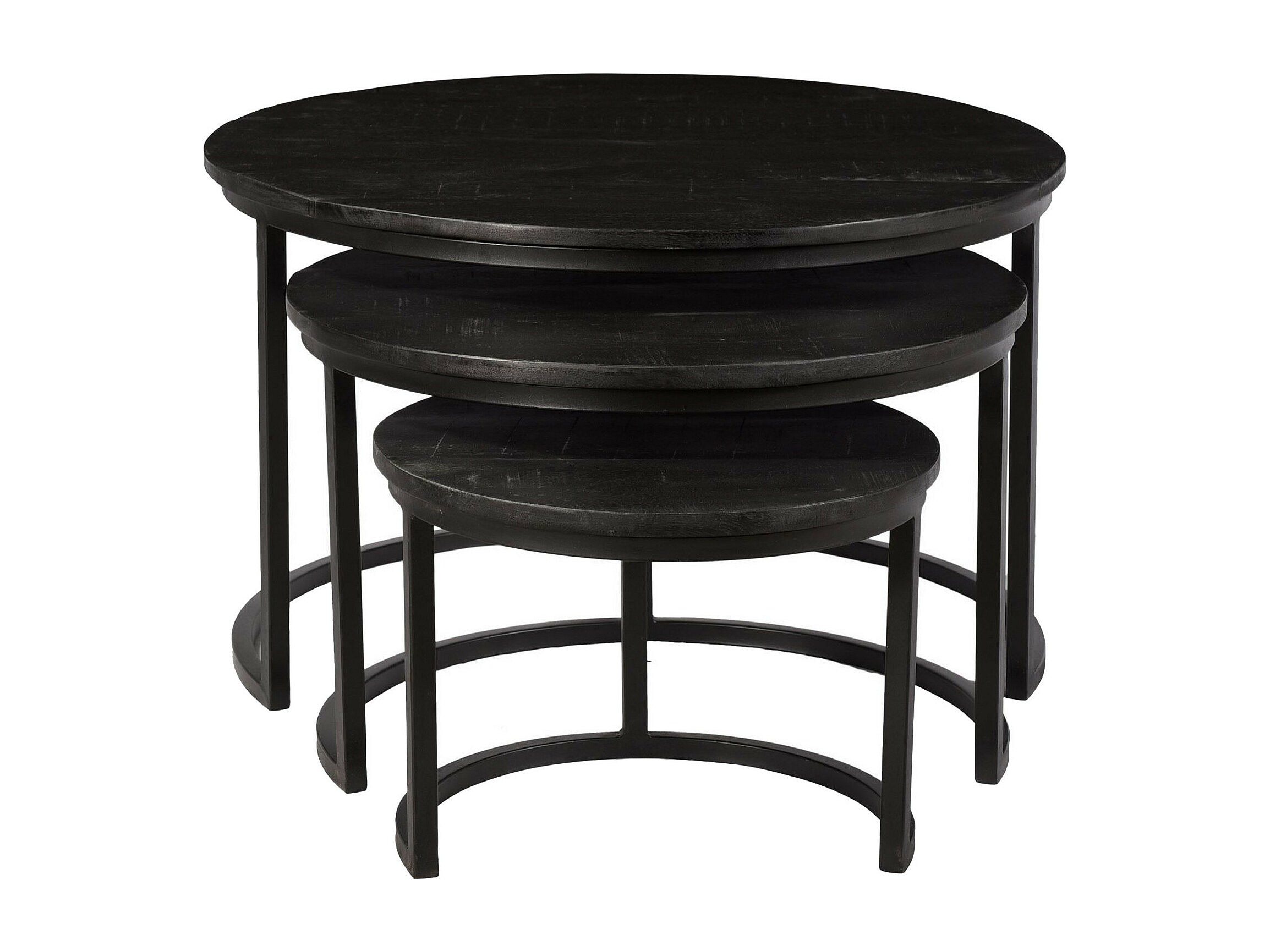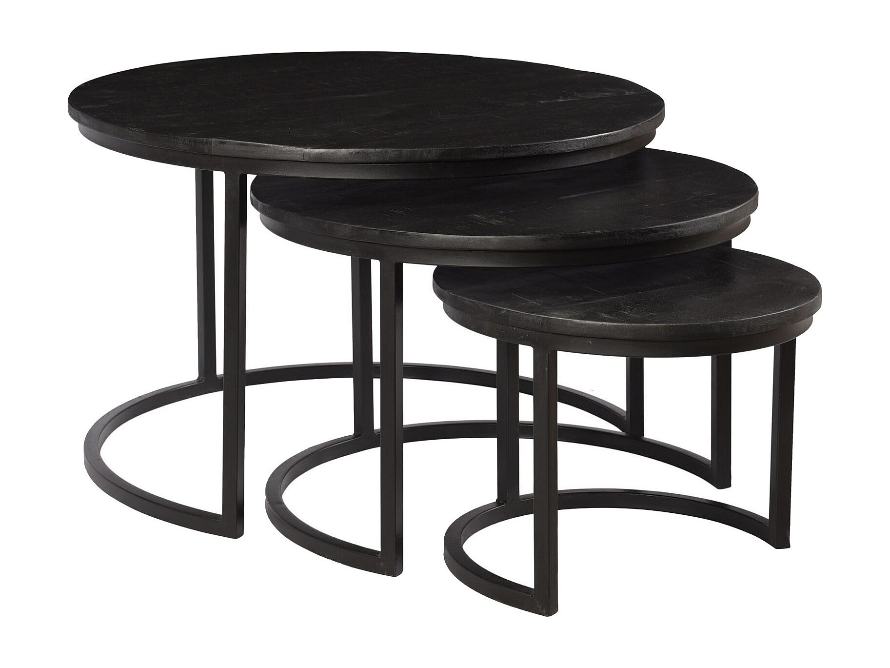 LUZ-Juego de 3 mesas de centro redondas de mango teñida de negro y metal