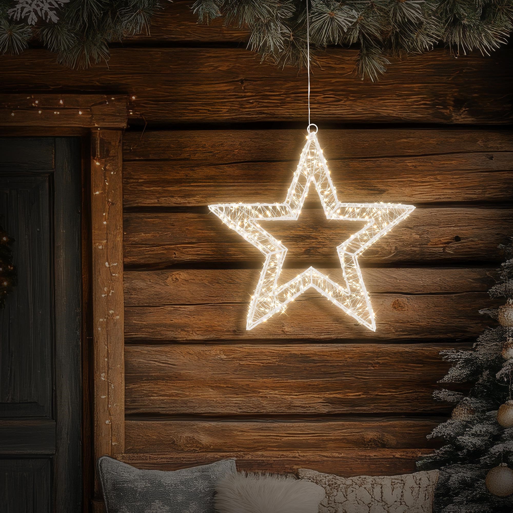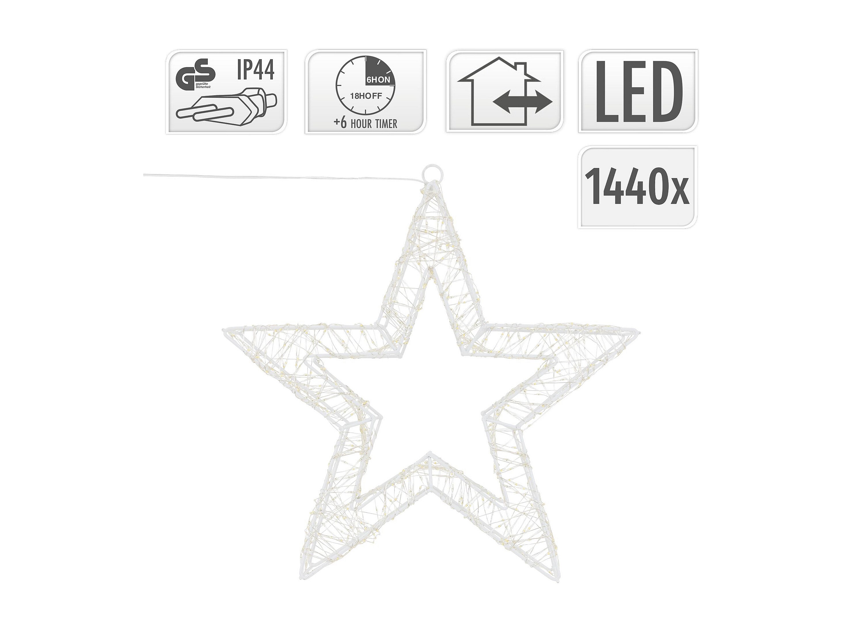 ECD Germany Estrella de Navidad 50cm blanca con 1440 luces LED bl. cálido para interior/exterior con temporizador decoración luminosa adorno colgante