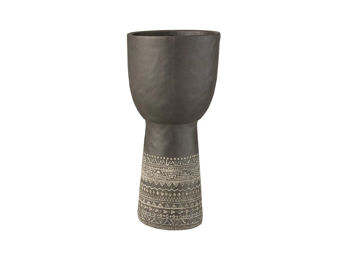 Maceta con decoración étnica en cemento gris de 23x23x50cm
