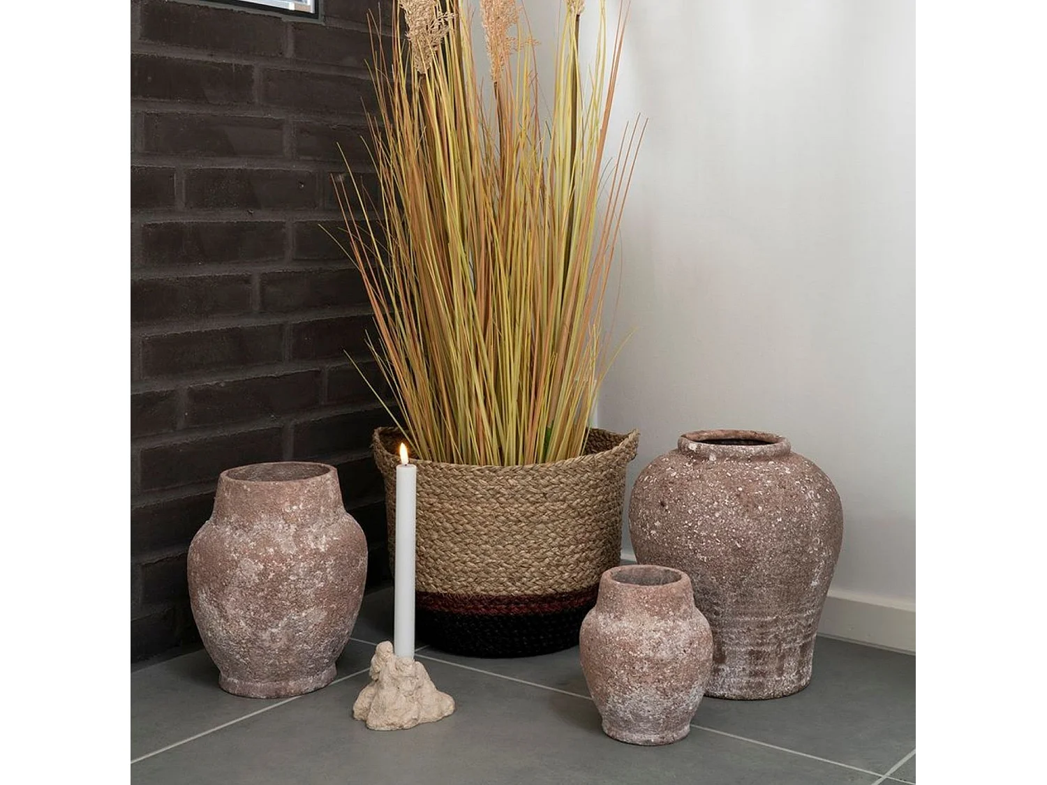 Jarrón ánfora de cerámica marrón 36*36*70 cm
