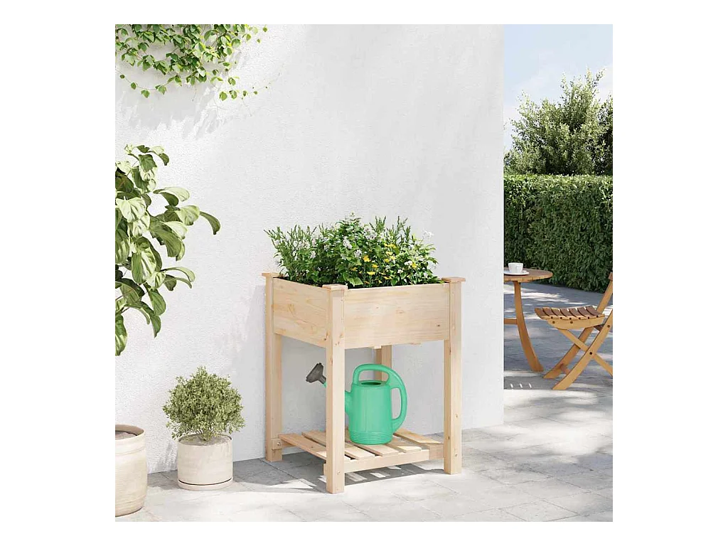 Maceta para Jardín | Jardinera | Macetero con estante Beige 60.5 x 60 x 76.5 cm