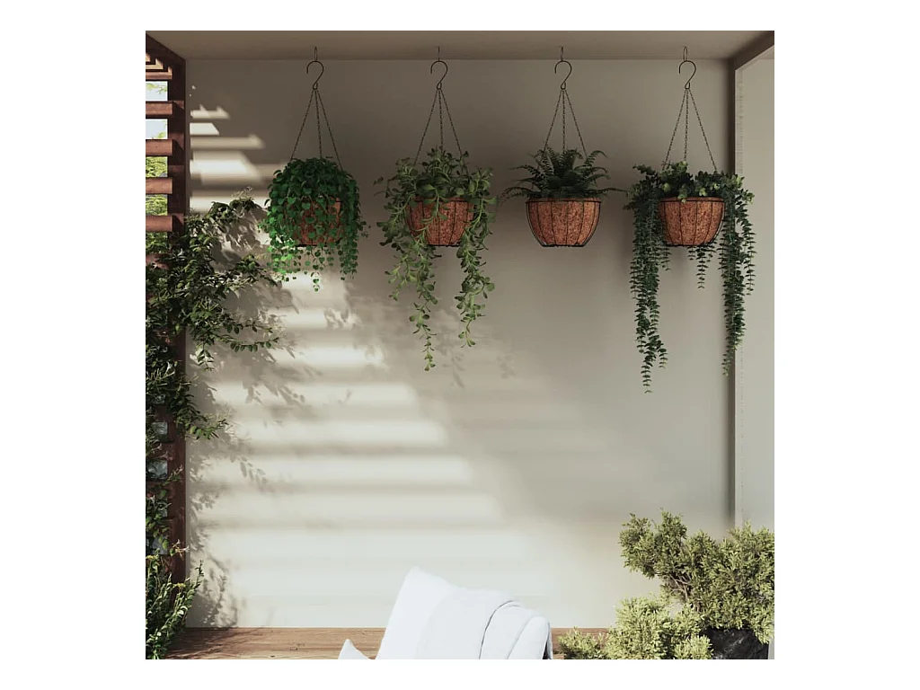 Macetas colgantes 4 uds revestimiento coco acero negro Ø40x63cm ES370295