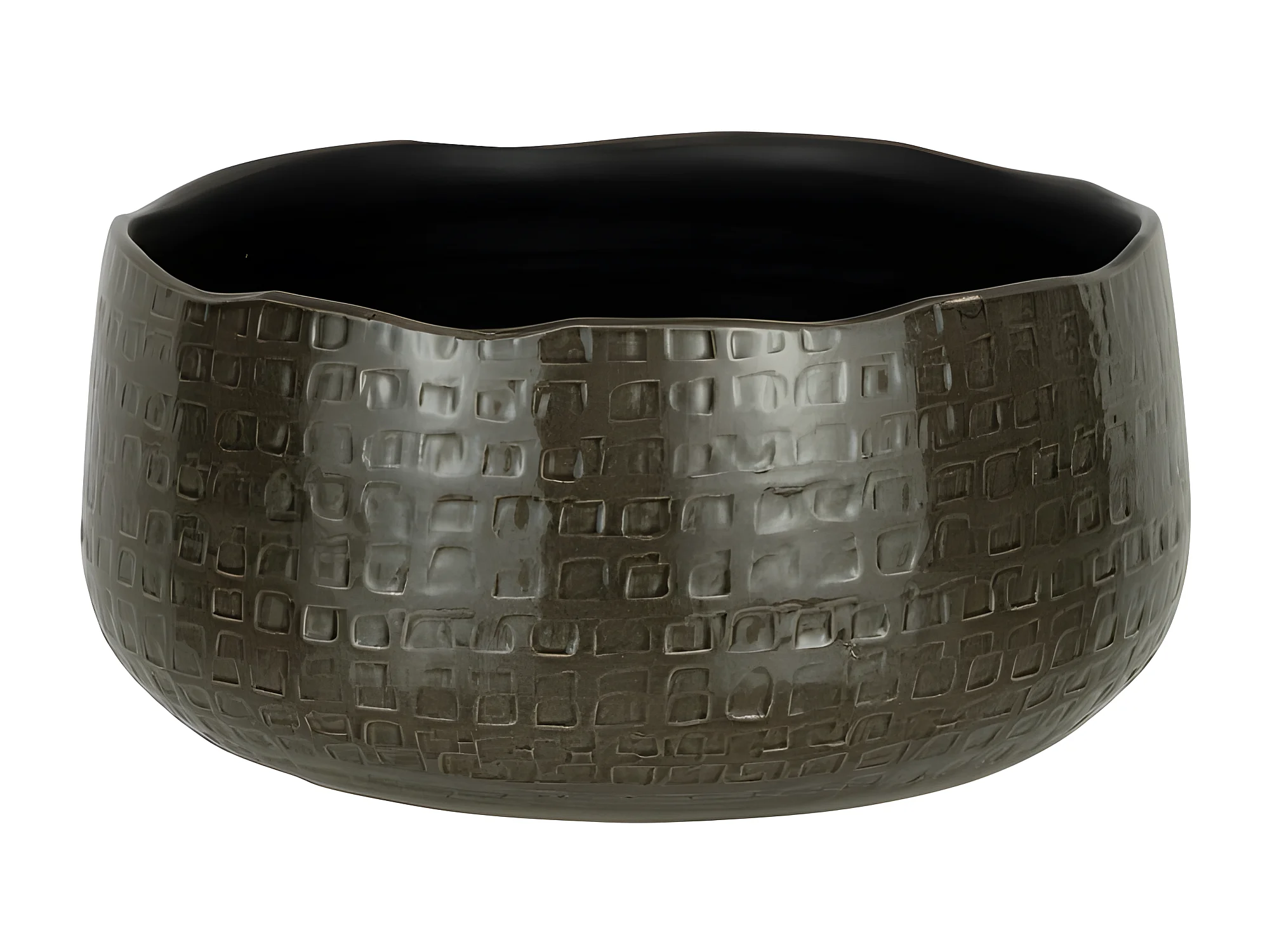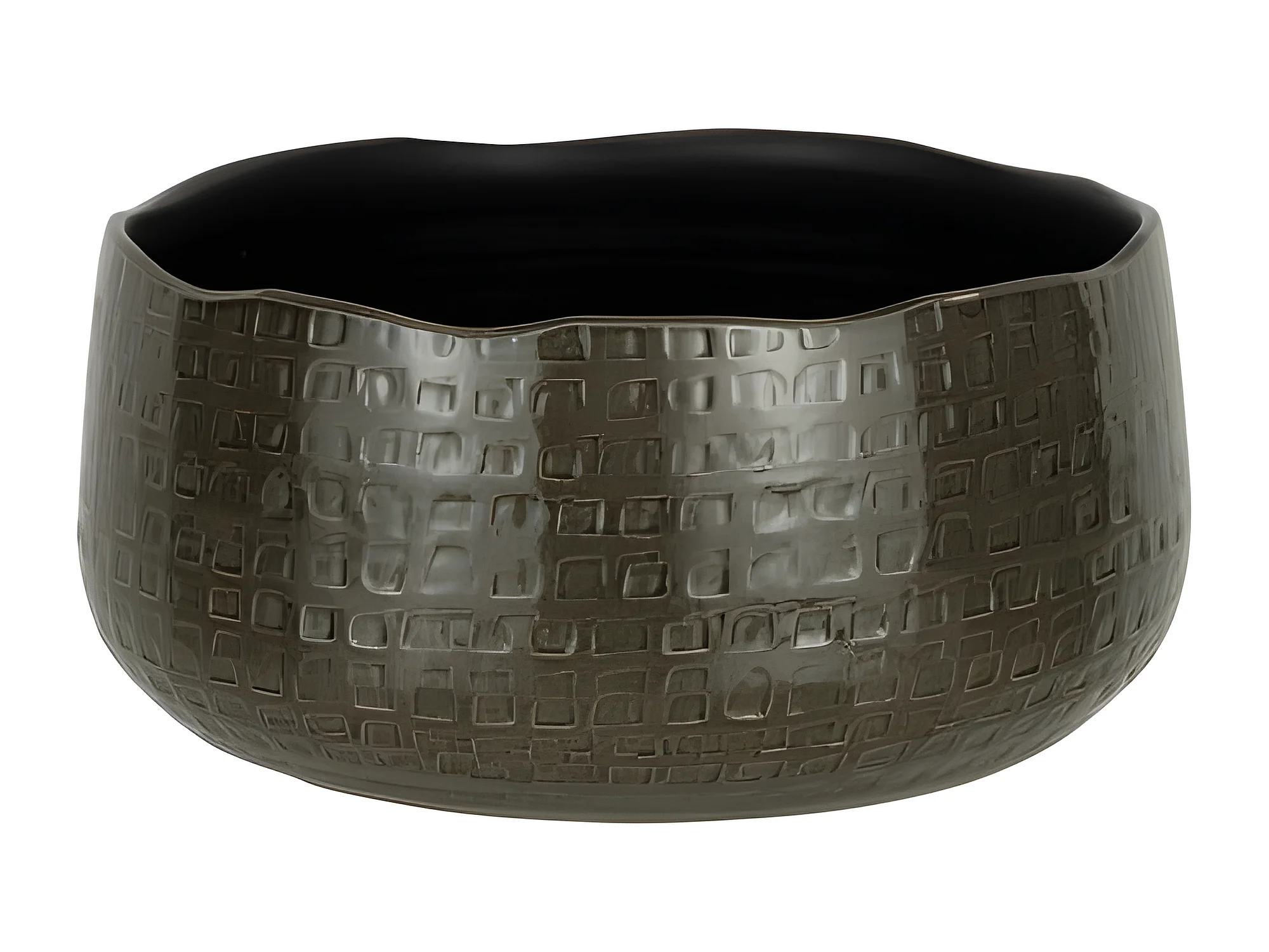 Macetero bajo con motivos en cerámica gris oscuro 32x32x15cm
