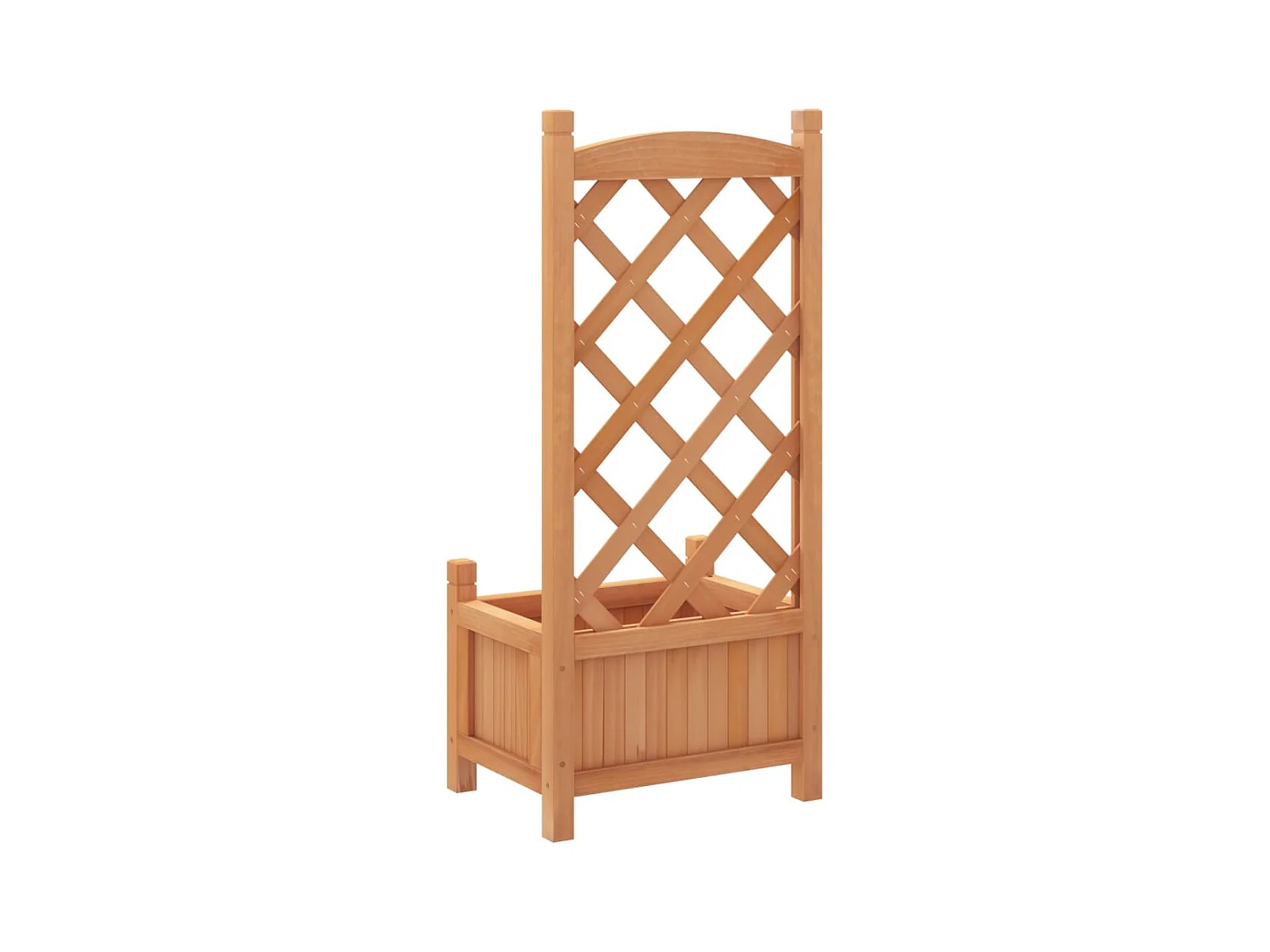 Macetero bancal elevado plantas flores terraza jardín con enrejado de madera maciza de abeto marrón 02_0038332