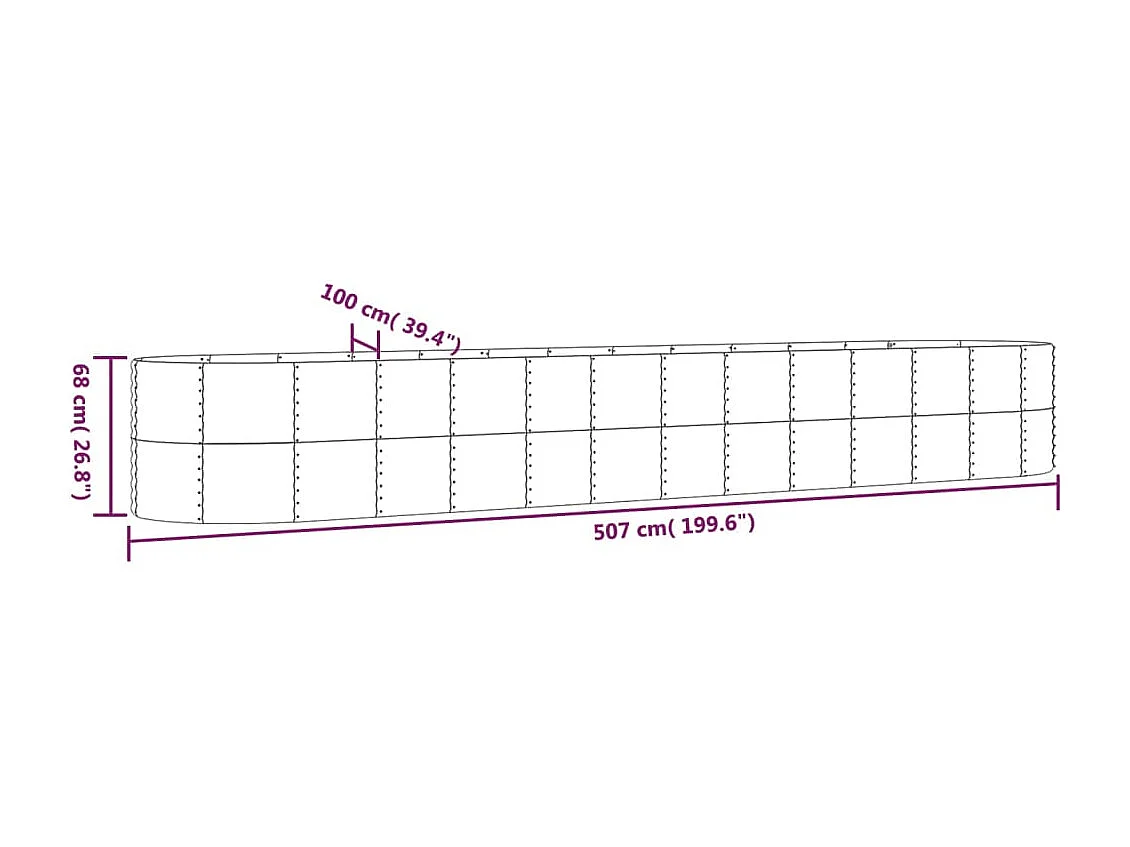 Macetero bancal elevado plantas flores terraza jardín jardín acero con recubrimiento en polvo 249 x 100 x 68 cm verde 02_0039613