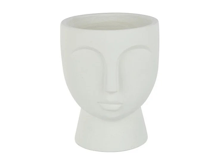 Macetero cara de cerámica blanca 18,5x18x22 cm