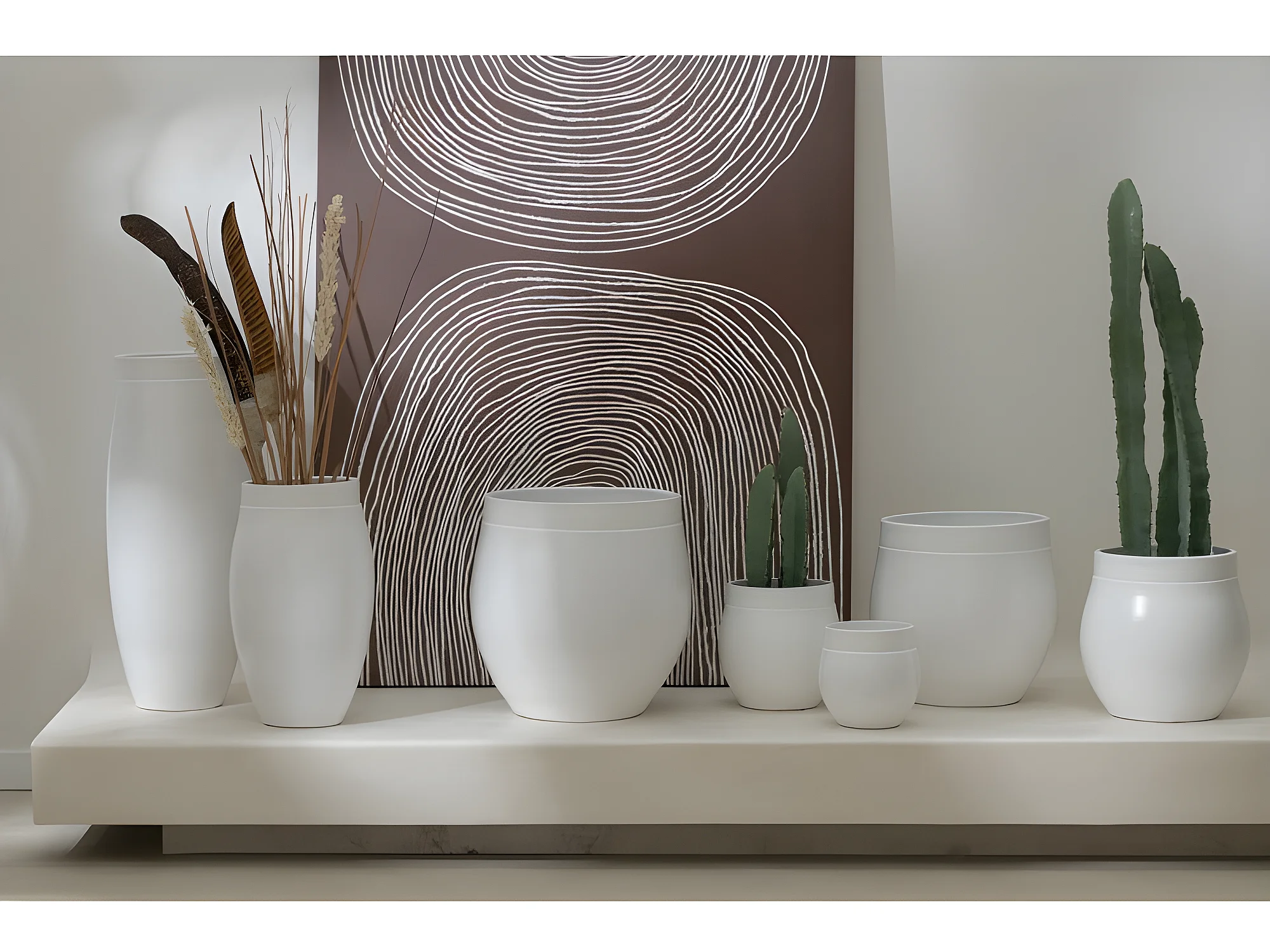 Macetero con diseños en cemento blanco de 33x33x29 cm