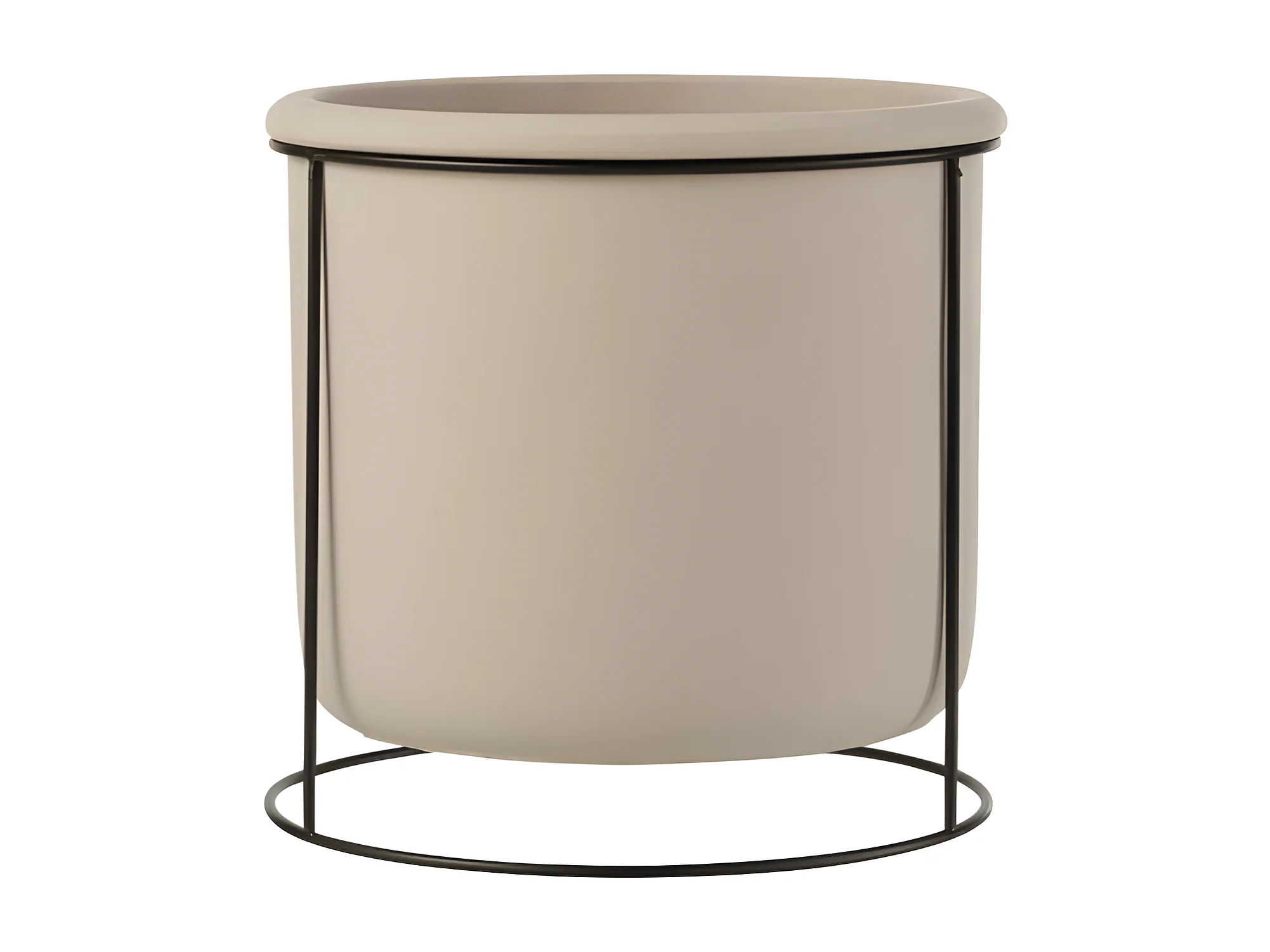 Macetero bajo con motivos en cerámica gris claro de 32x32x15cm