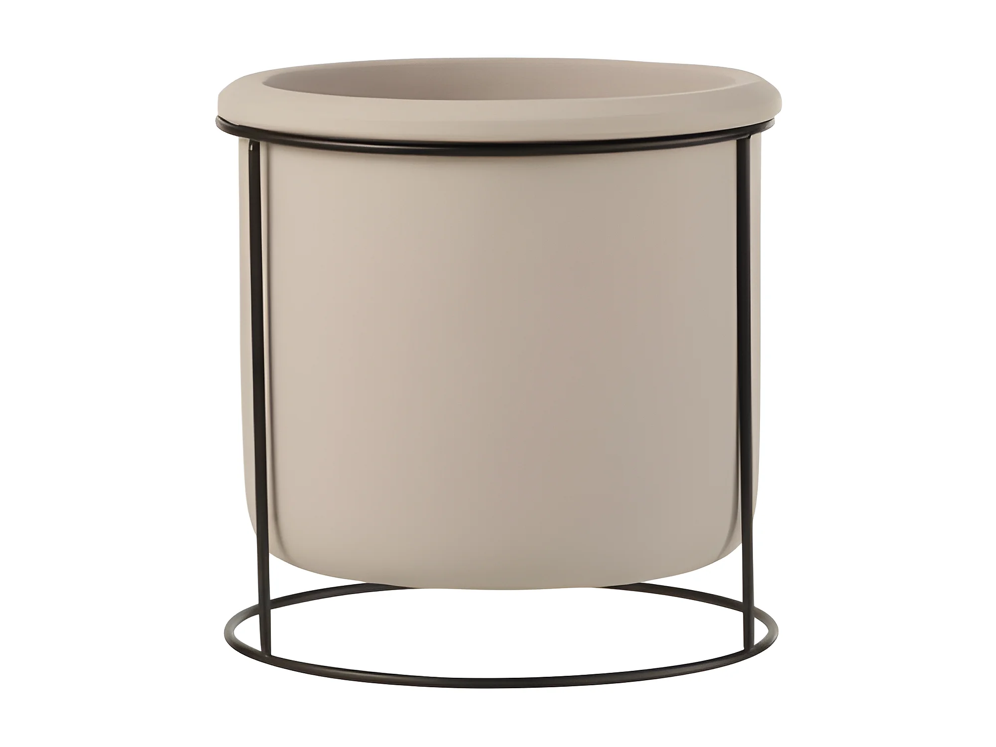 Macetero con motivos en cerámica gris claro de 22x22x18cm