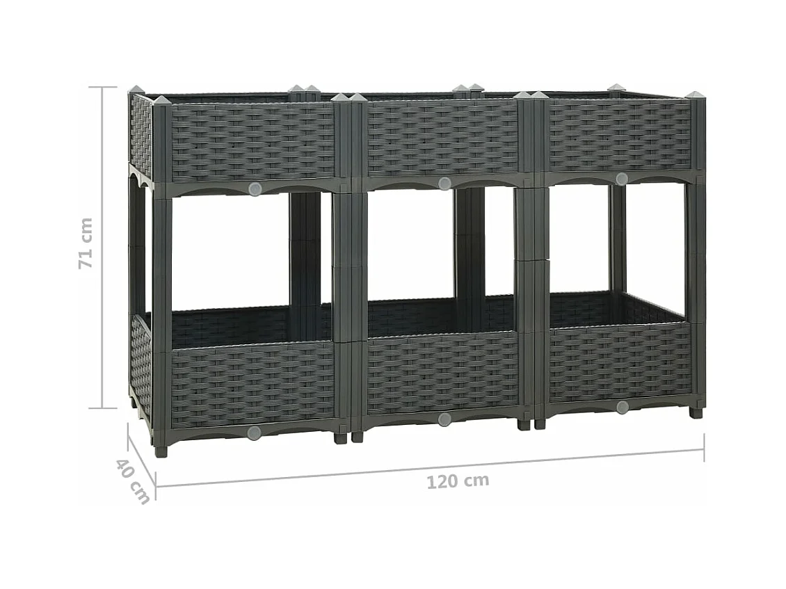 Macetero elevado plantas flores jardín 120 x 40 x 71 cm polipropileno gris oscuro 02_0000908