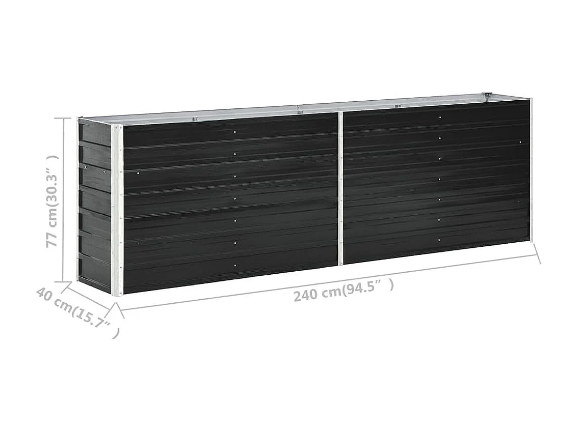 Macetero elevado plantas flores jardín 240 x 80 x 77 cm antracita acero galvanizado 02_0001144