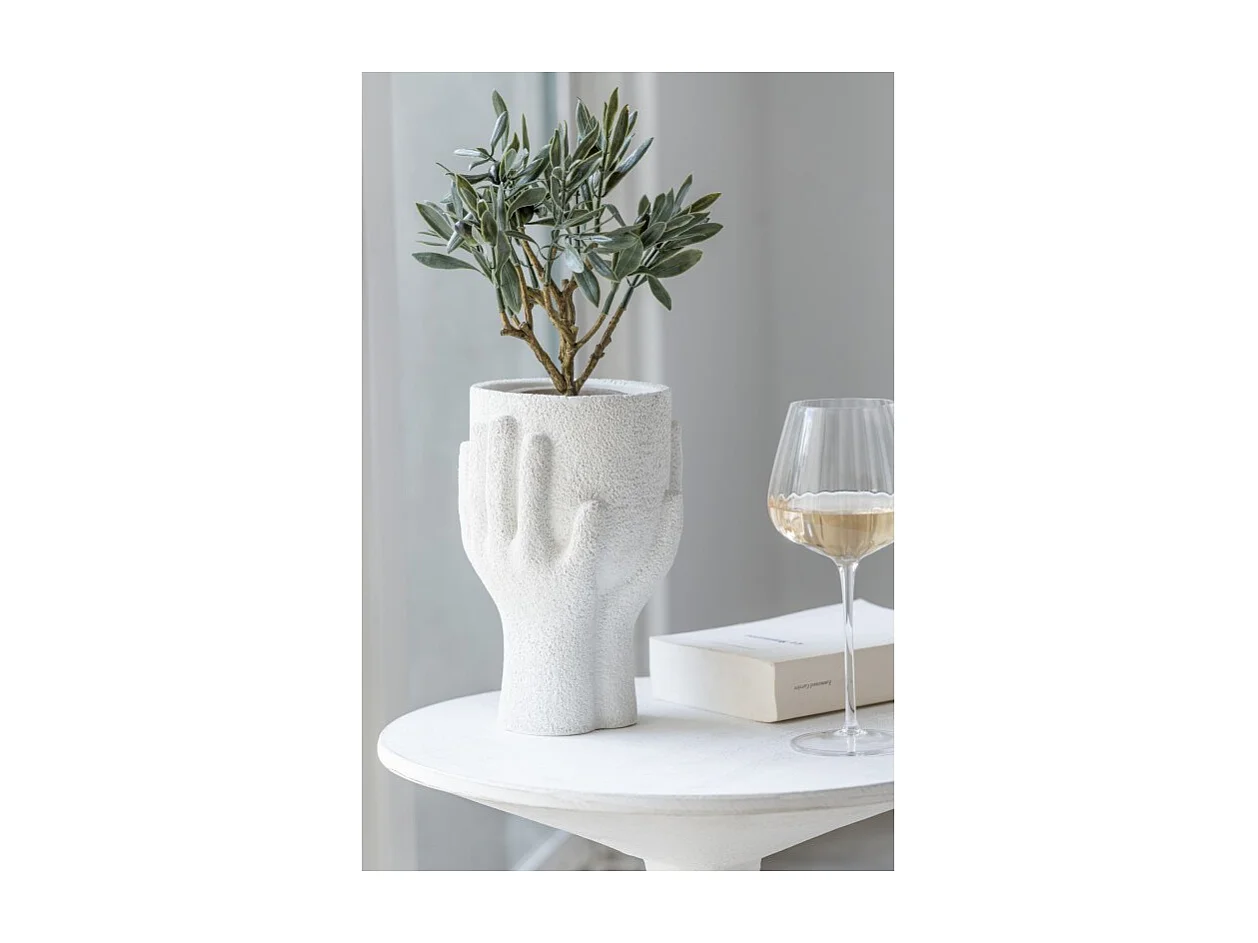 Macetero mano de cerámica blanca 16.5x14x24 cm