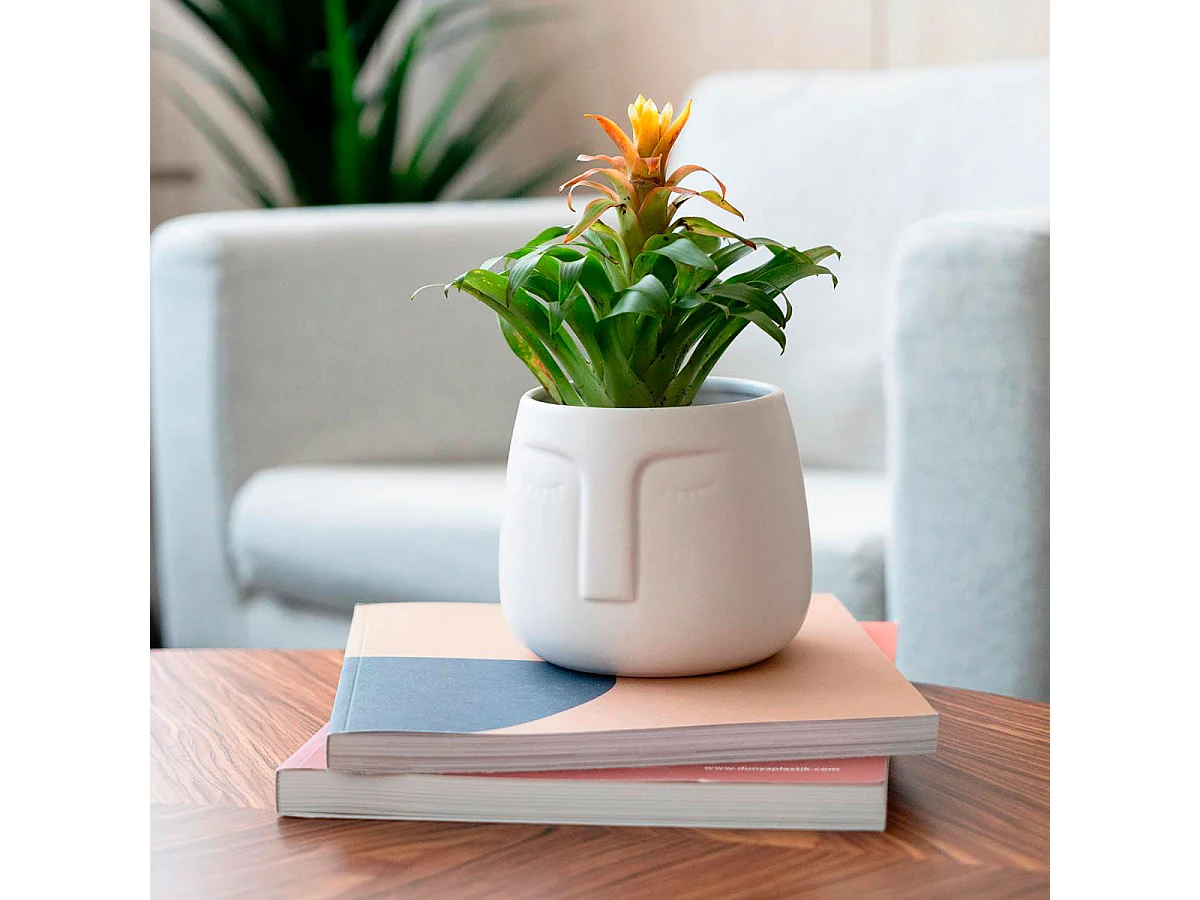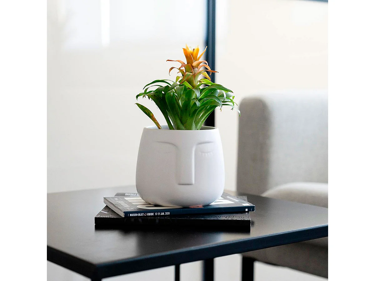 Macetero MOA Vinthera diseño de cara blanco ø10,5x10,5 cm