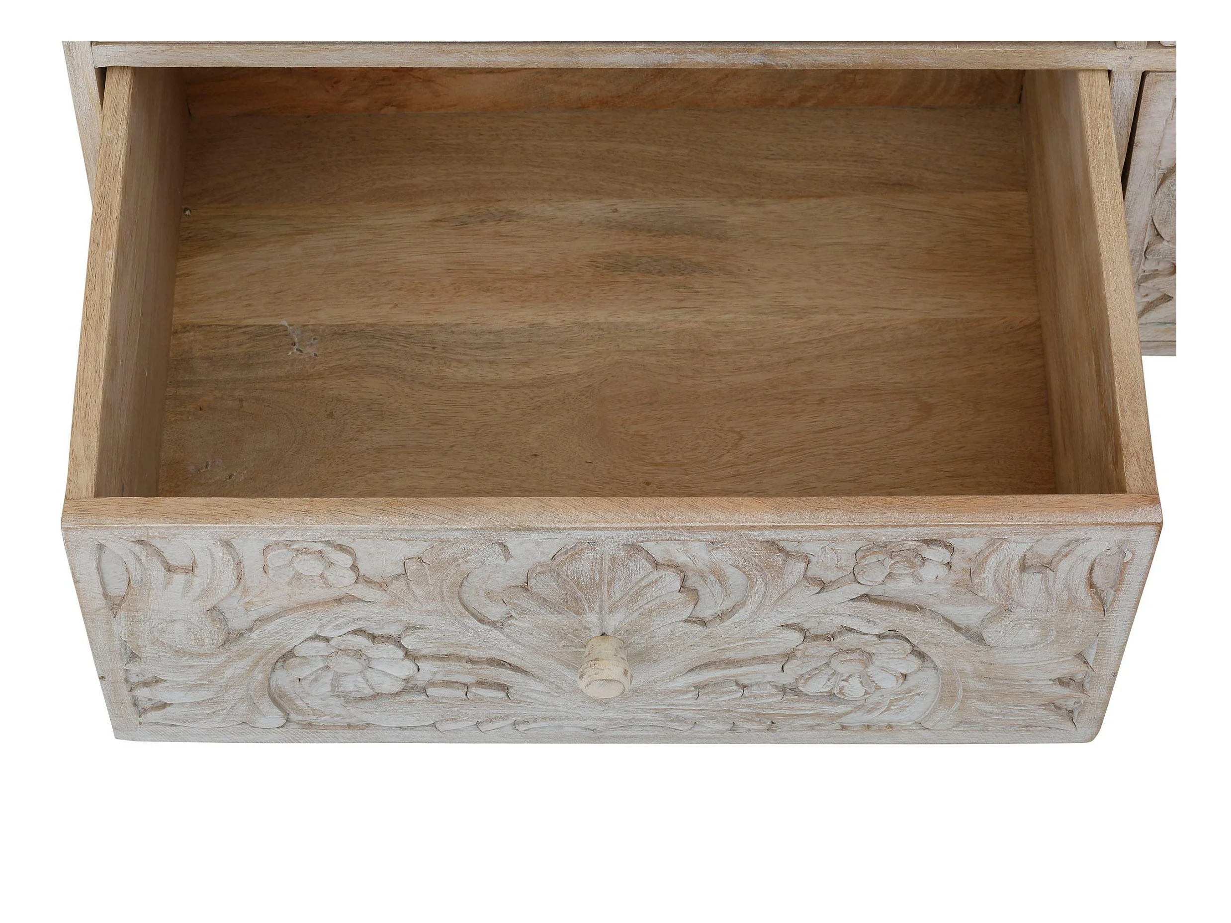 Artisan Furniture Mueble de madera maciza curvado de castaño con 3 cajones, dormitorio