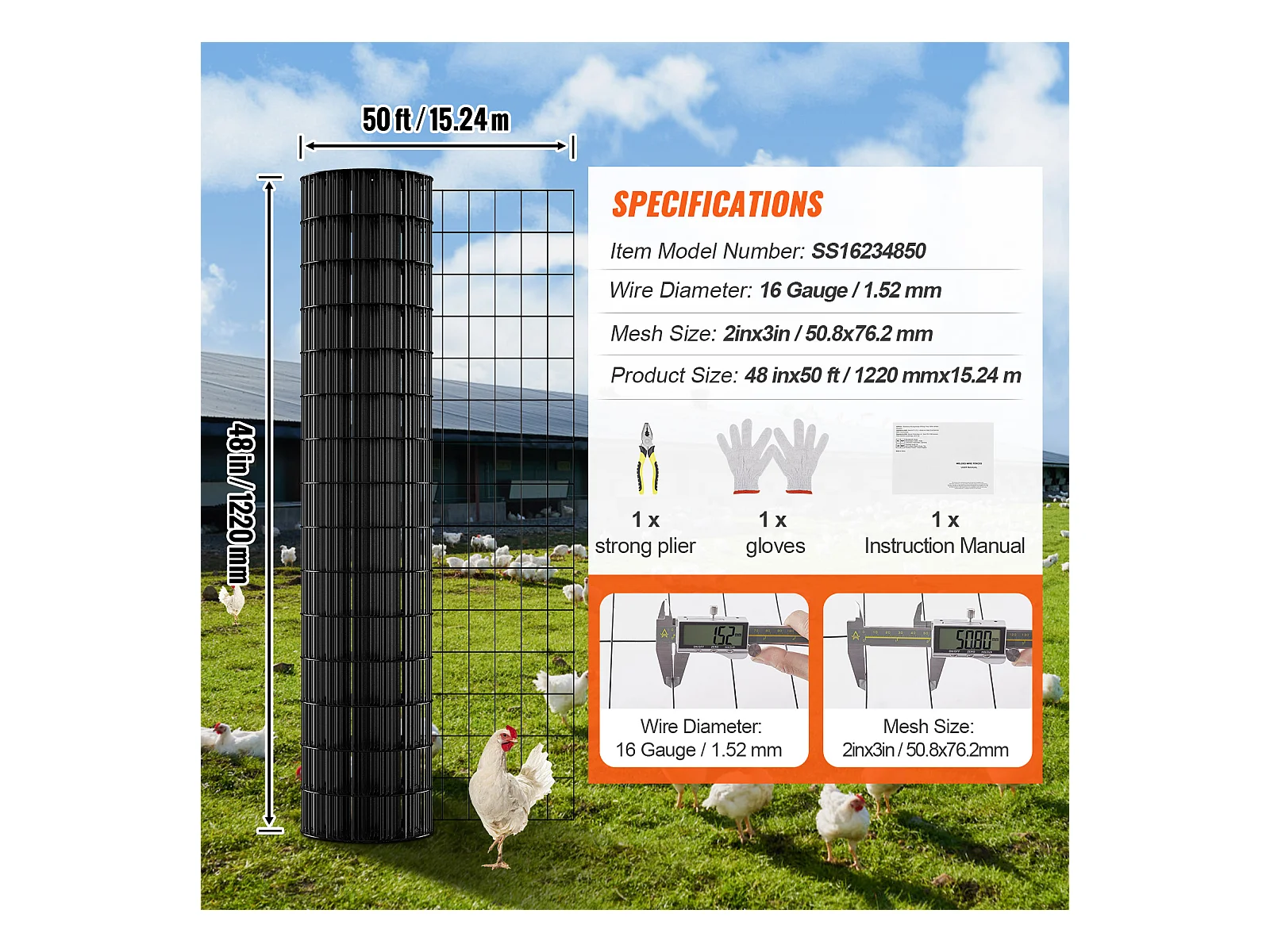 Rollo de Malla Metálica Galvanizada SucceBuy Hardware Cloth, Malla para Pollos Calibre 16, Malla Metálica Recubierta de Vinilo