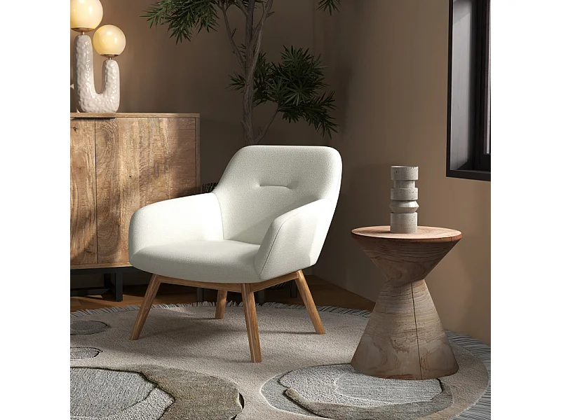 MALMO-Sillón de madera natural y tela Trendy Beige