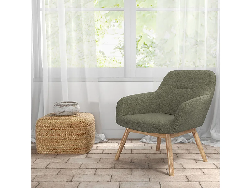 MALMO-Sillón de madera natural y tela Trendy Sauge