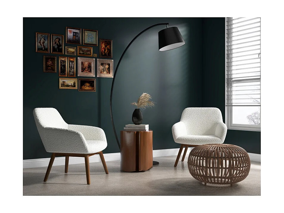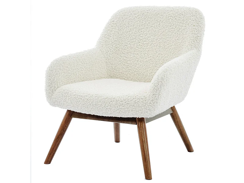 MALMO-Sillón de madera patinada nogal y tejido rizado Ecru