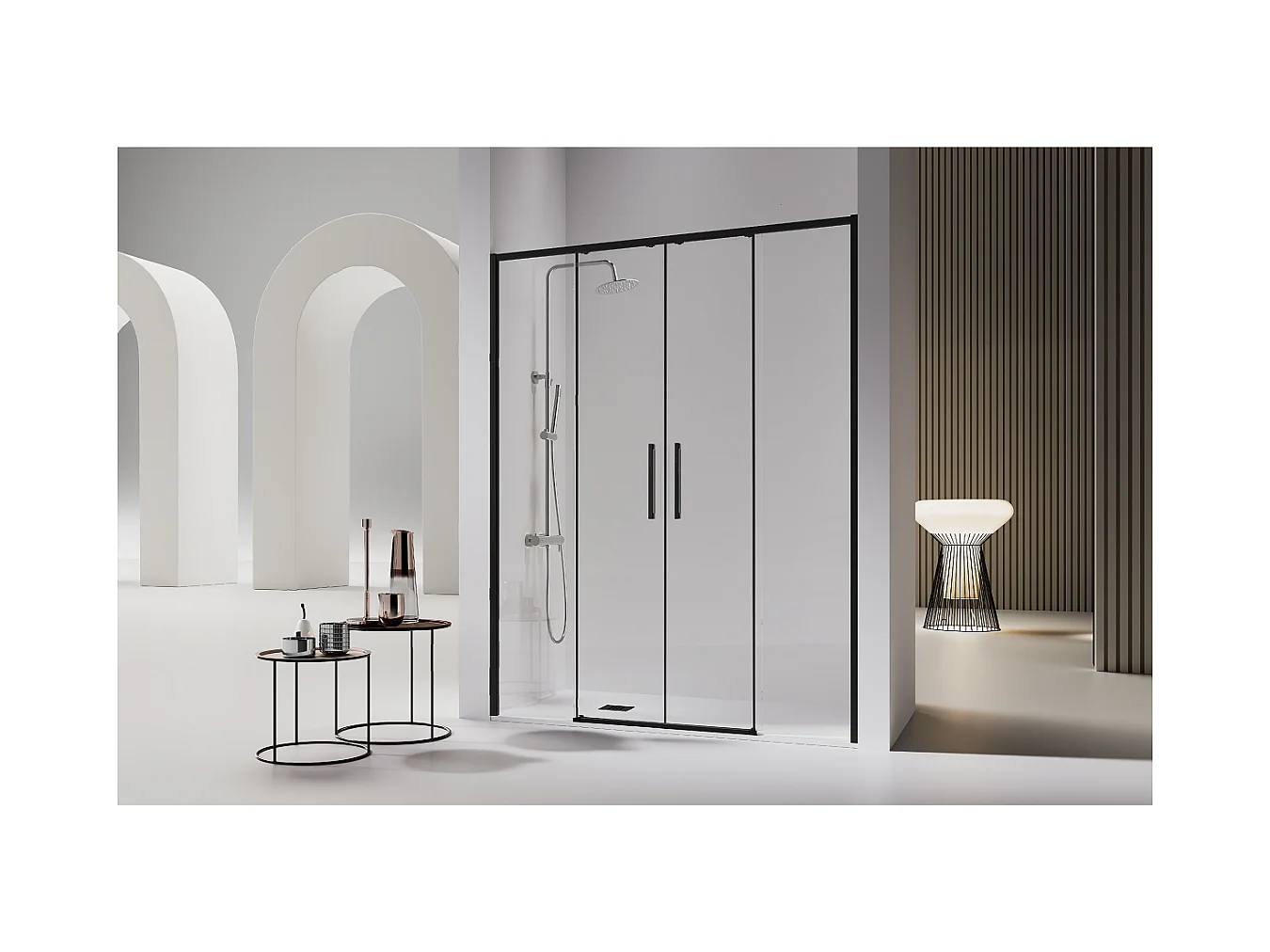 Frontal de ducha 2 Fijos + 2 Puertas Correderas 171-173.6 cm DELTA 2 Negro