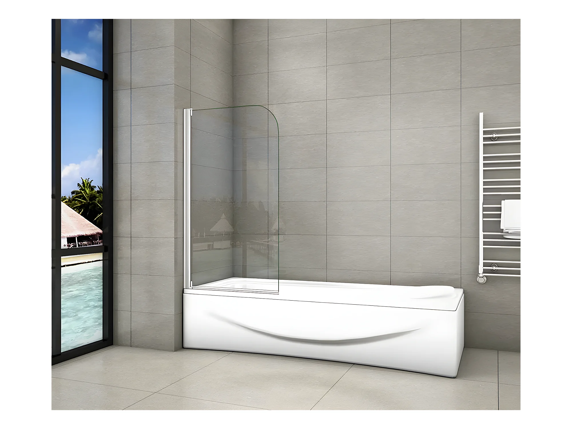 Mampara de bañera pivotante simple 1 hoja cristal templado 5mm con toallero 400mm (795-800)x1400mm