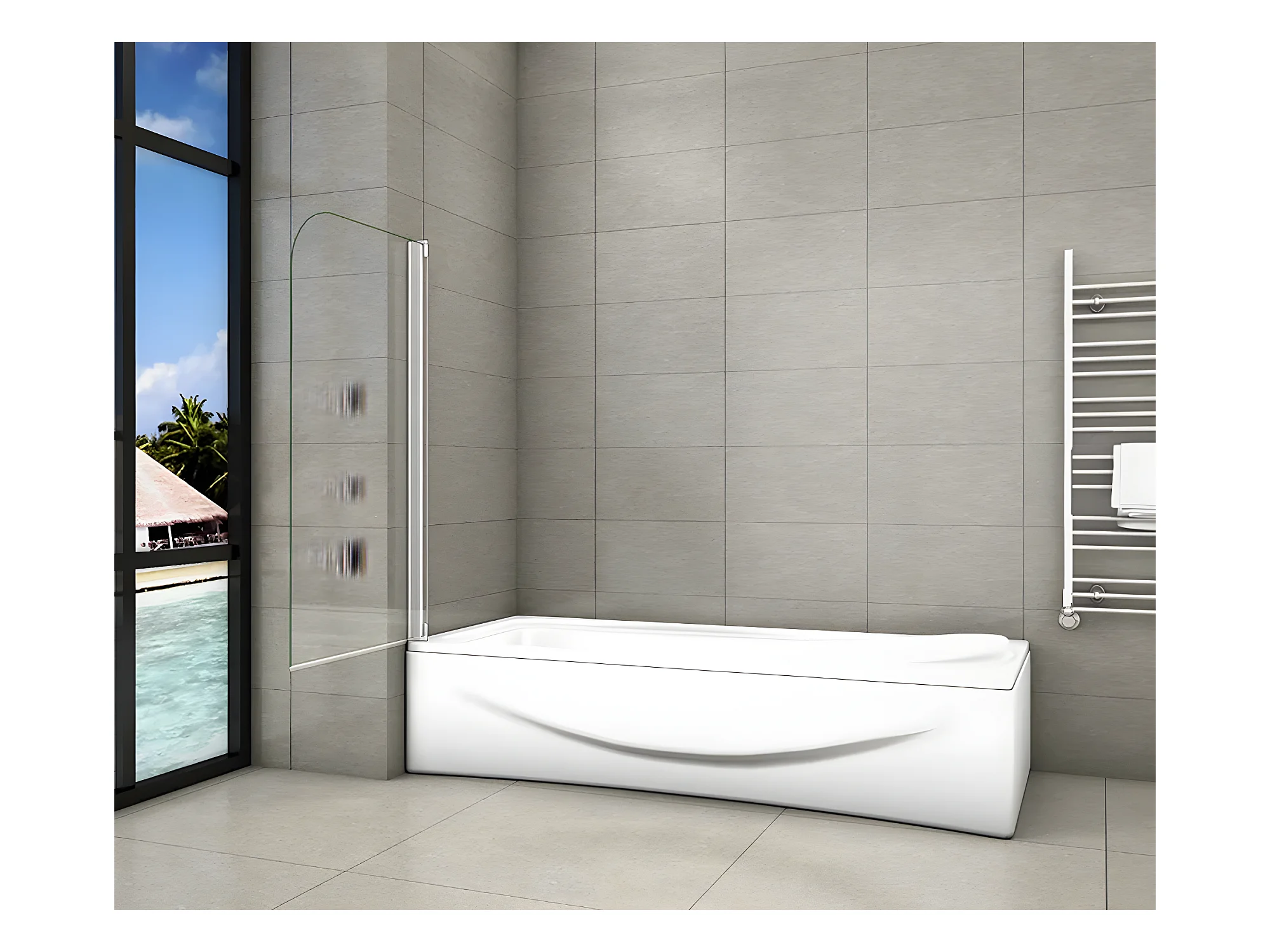 Mampara de bañera con perfil gris mate abatible 1 hoja pivotante cristal templado 5mm con toallero 400mm (780-800)x1400mm