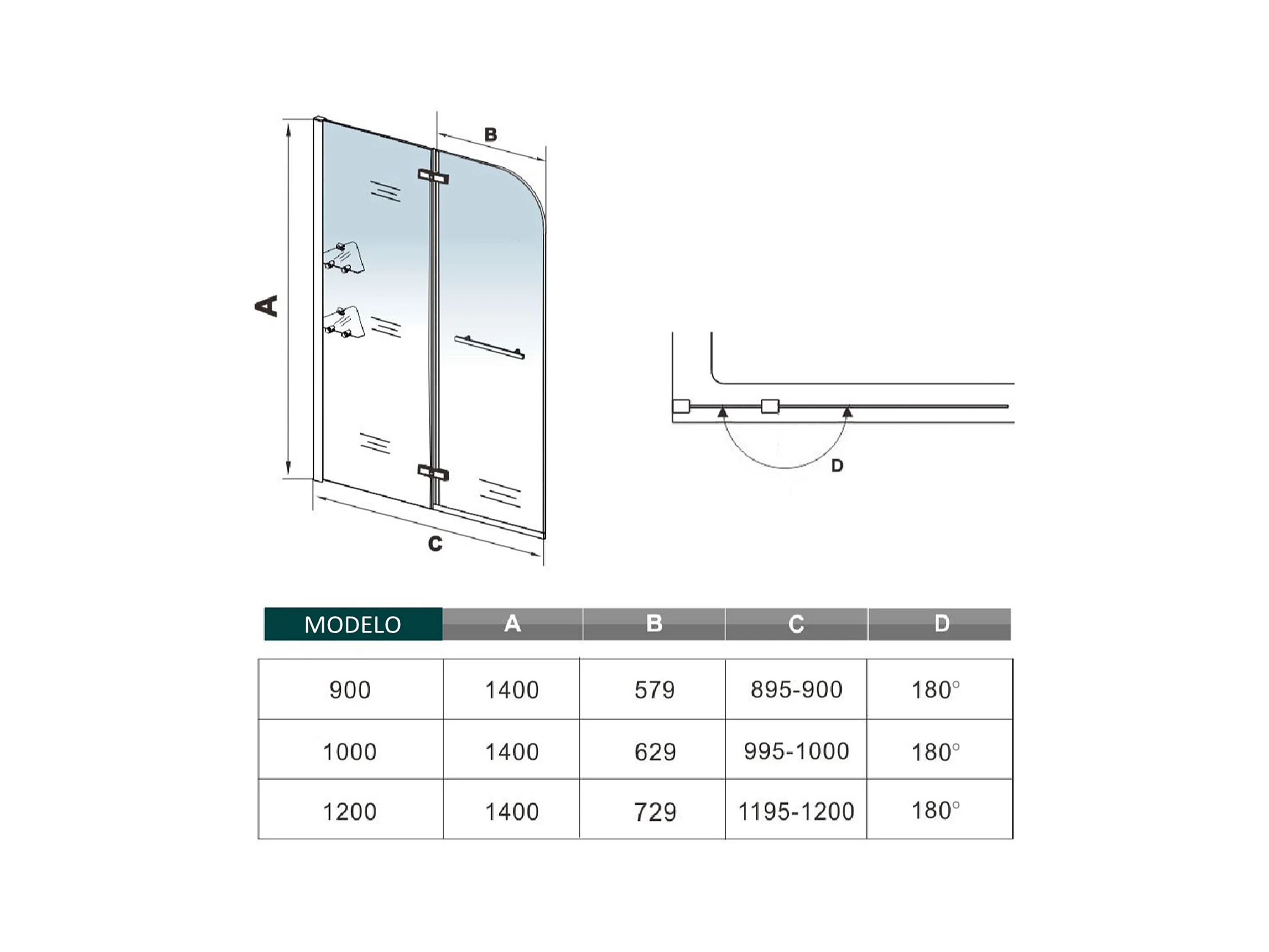 Mampara de bañera abatible-cristal templado 6mm-con perfil cromado-(780-800)x1400mm