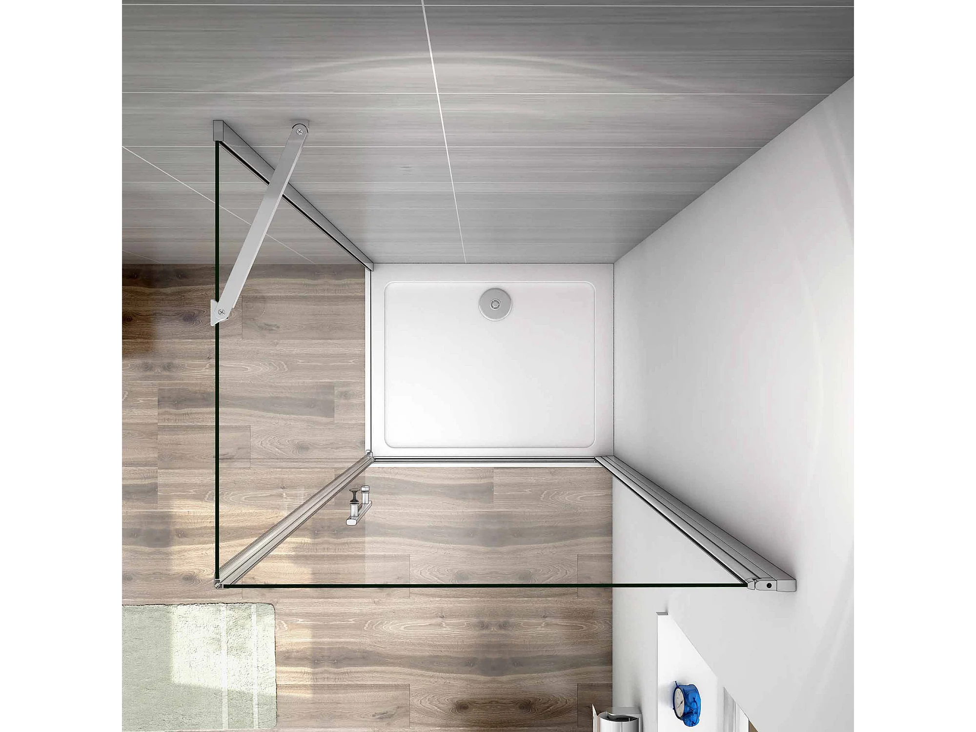 AICA Mampara de ducha abatible+panel lateral,barra 50cm,vidrio antical 6mm 1100x760x1950mm