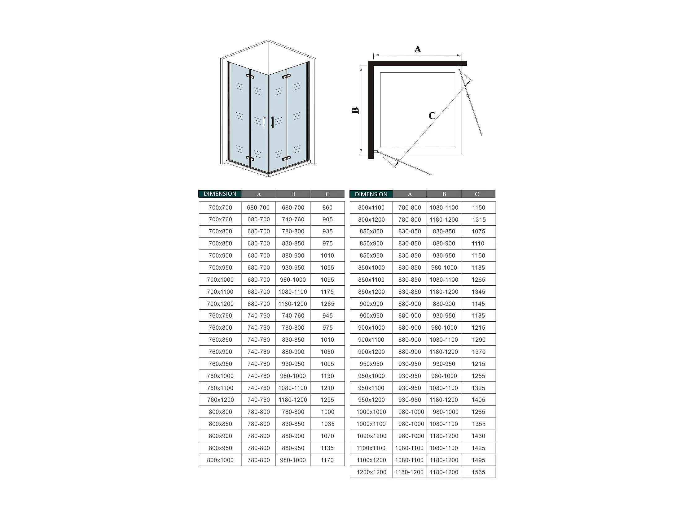 AICA Mampara de ducha cuadrada angular plegable 6mm antical,(830-850)x(830-850)x1950mm