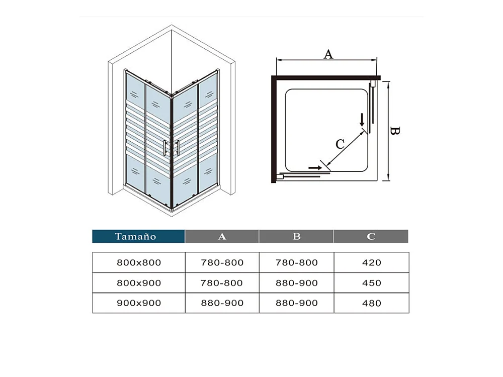 AICA Mampara de ducha cuadrada corredera,vidrio serigrafiado 5mm (780-800)x(780-800)x1950mm