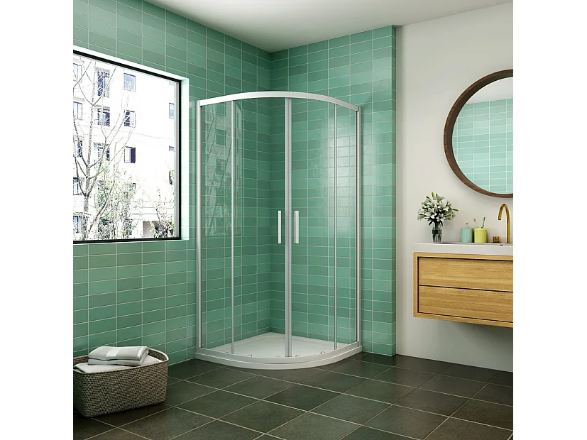 AICA Mampara de ducha curva semicircular corredera,perfil blanco,vidrio 5mm,760x760x1850mm