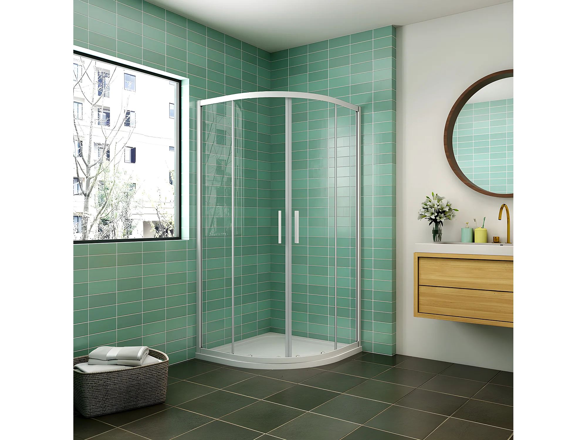 AICA Mampara de ducha curva semicircular corredera,perfil blanco,vidrio 5mm,800x1000x1850mm