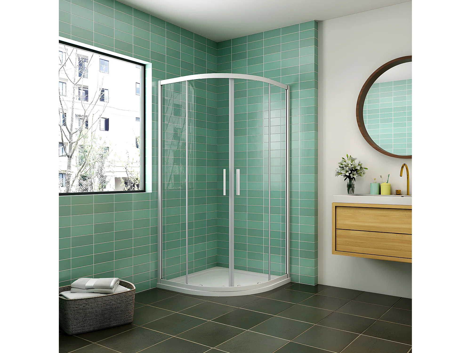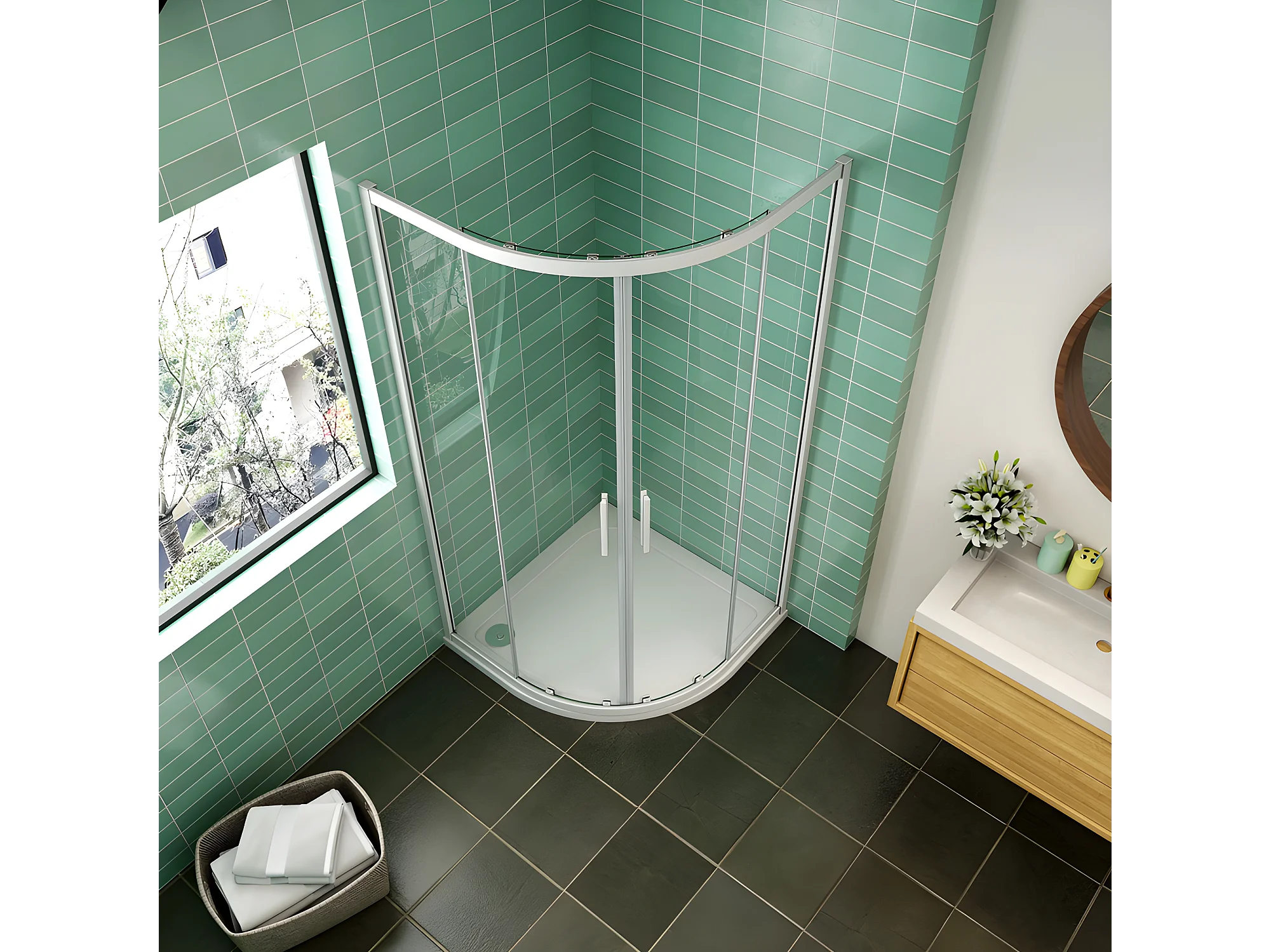 AICA Mampara de ducha curva semicircular corredera,perfil blanco,vidrio 5mm,900x900x1850mm