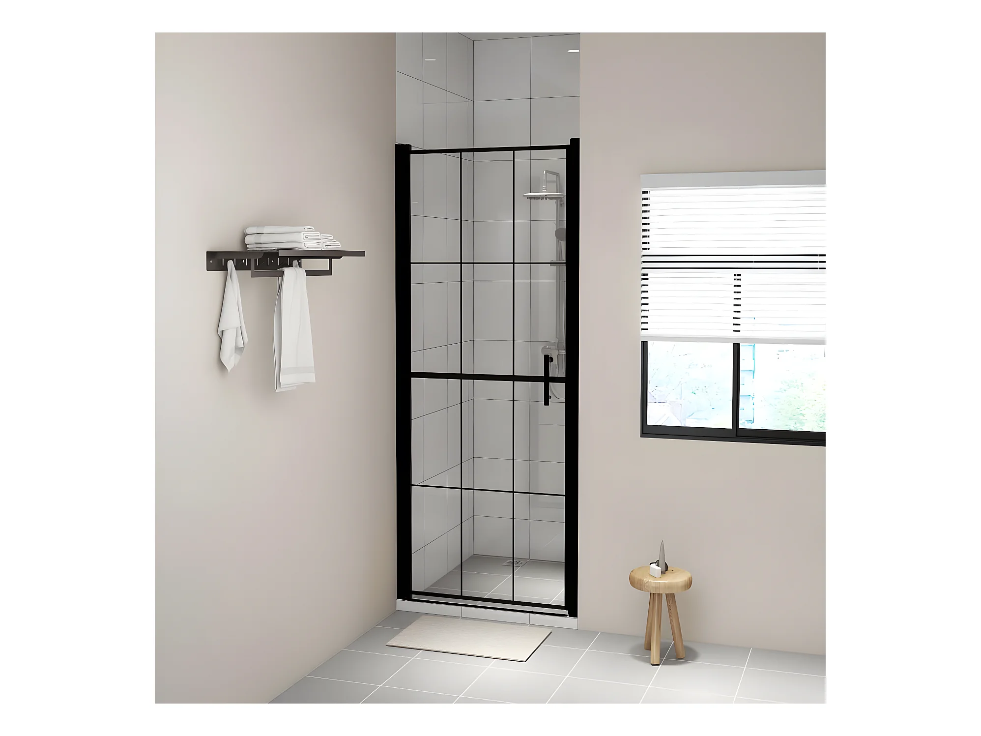 Mampara de ducha de vidrio templado esmerilado negra 81x195 cm ES66480