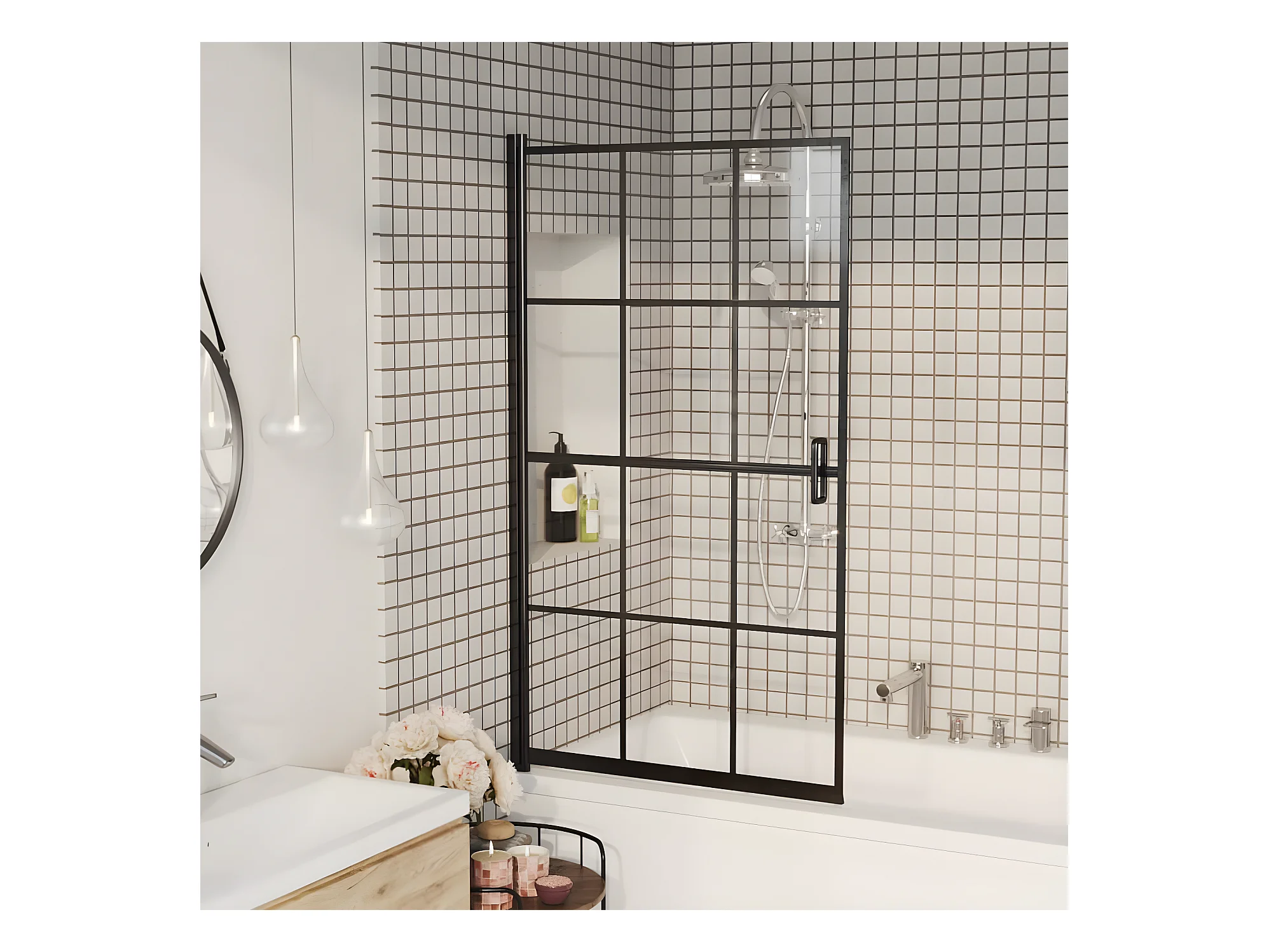 Mampara ducha accesible vidrio ESG transparente negro 90x195 cm ES66424