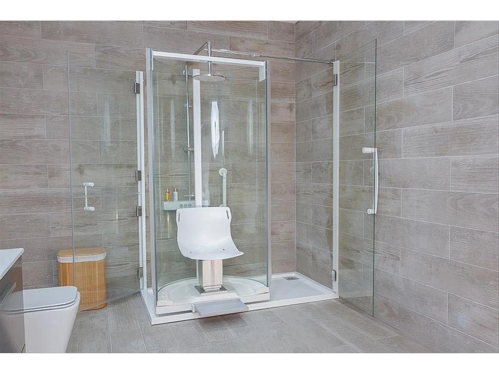 Mampara de Ducha HCS con sistema eléctrico con panel giratorio para personas mayores o movilidad reducida. Rectangular 155x80cm Izquierda