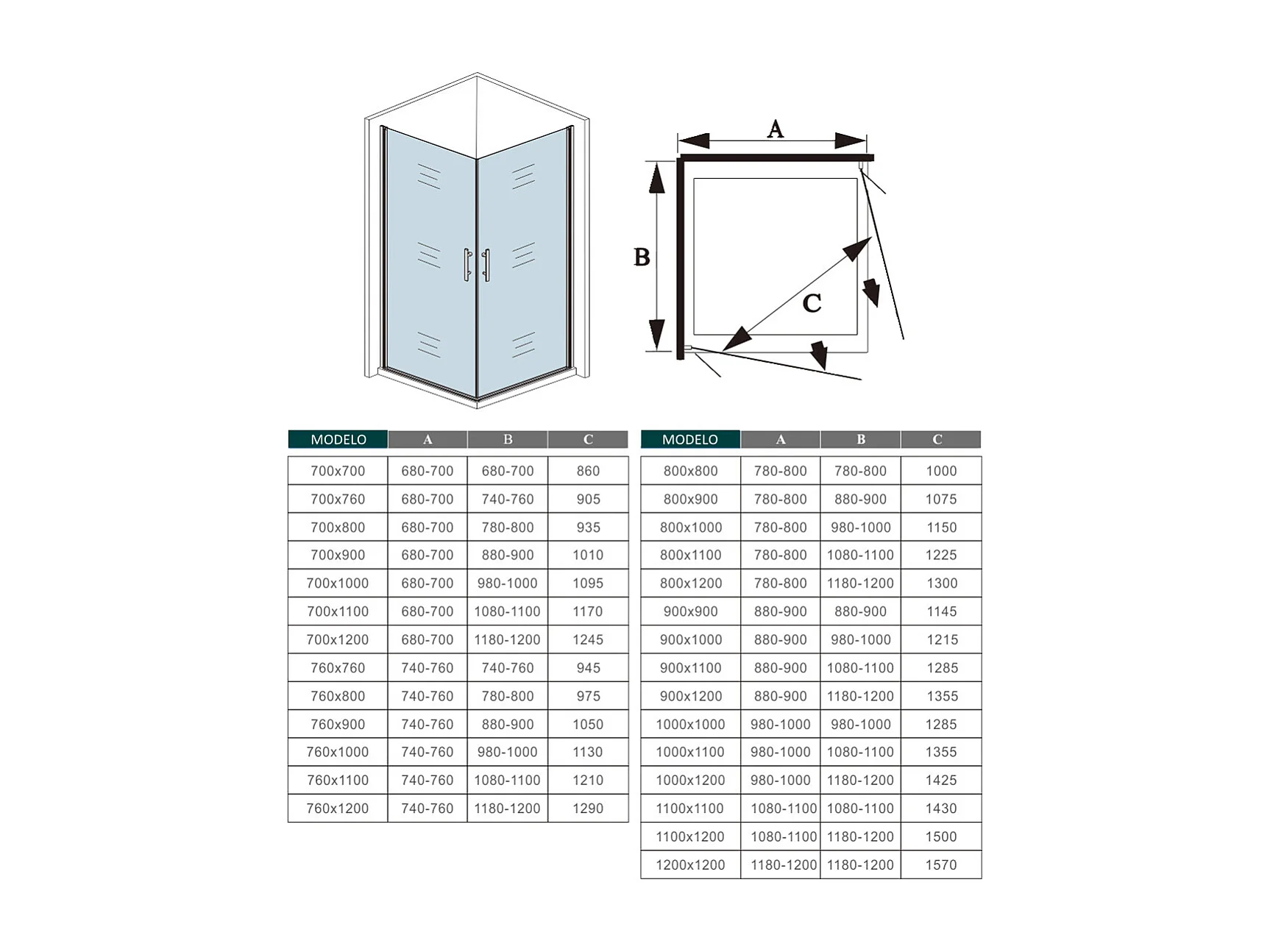 AICA Mampara de ducha rectangular abatible giratoria vidrio antical 6mm 850x700x1950mm